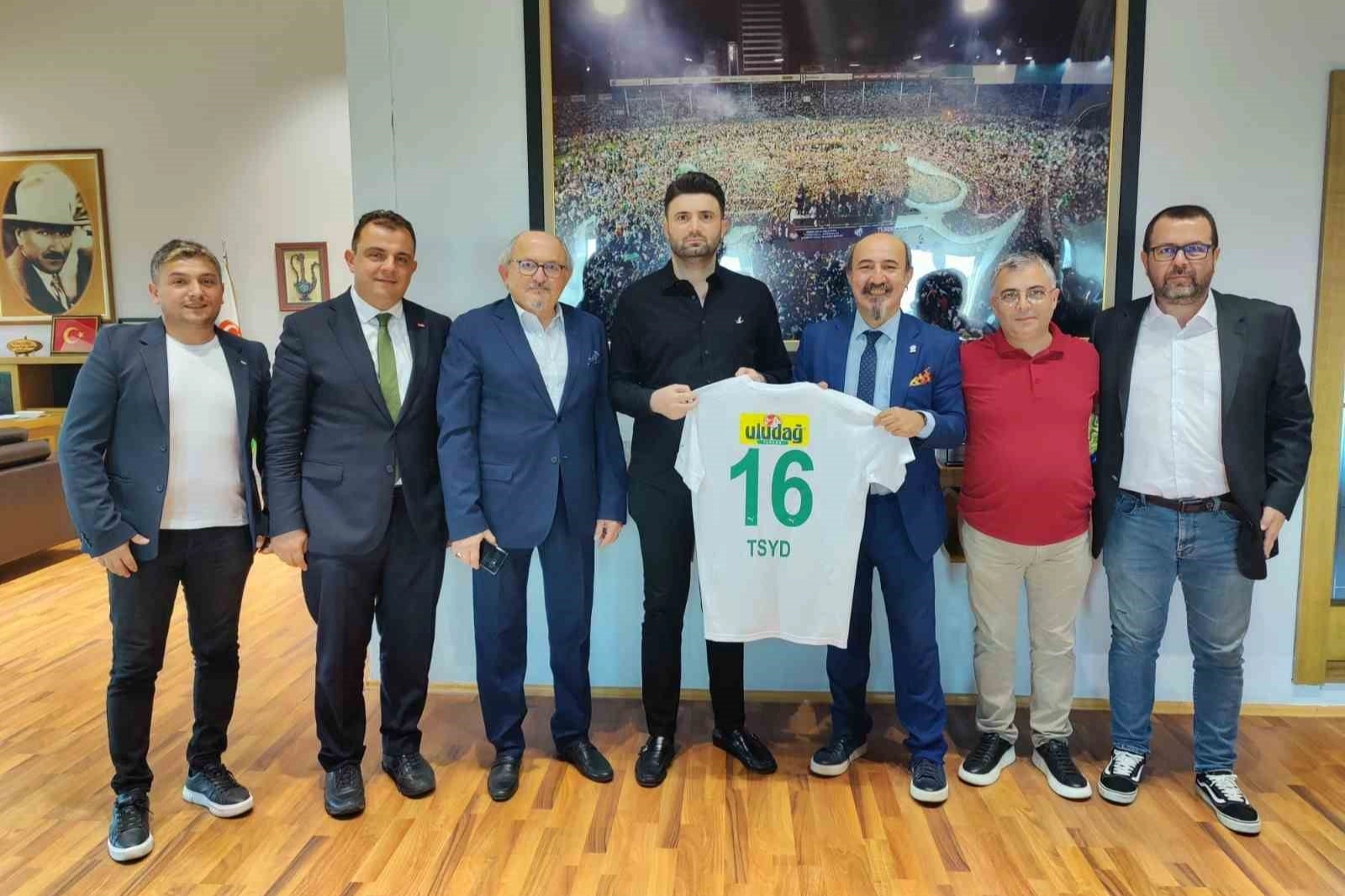 Ziyaretin sonunda TSYD Genel Merkez yönetim kurulu üyesi İlhan Öztat, Başkan Enes Çelik’e derneğin rozetini taktı. Çelik de TSYD Bursa Şube Başkanı Mehmet Ali Ekmekçi’ye ‘TSYD’ yazılı forma hediye etti.
