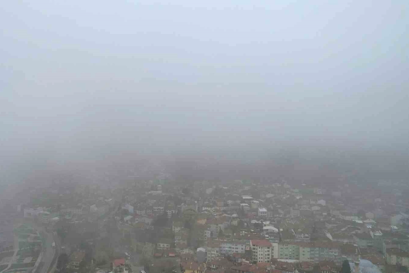 Sabahın ilk saatlerinde özellikle yamaç bölgelerde yoğun şekilde görülen sis tabakası, zamanla aşağı kesimlere doğru inerken şehir silüetini de kapladı. Kentin bazı noktalarında sisin oluşturduğu görüntü dikkat çekti.