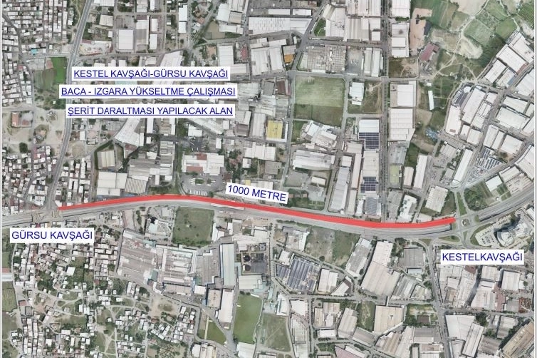 Bursa Büyükşehir Belediyesi Ulaşım Daire Başkanlığından gelen açıklamada "Bursa Büyükşehir Belediyesi Ulaşım Daire Başkanlığı tarafından Kestel Kavşağı ile İhtisas Kavşağı arasında ızgara baca yükseltme işlemleri yapılacaktır. Çalışmalar çerçevesinde 27 Ağustos akşamından itibaren yaklaşık 10 gün boyunca 22.00-06.00 saatleri arasında şeritler daraltması yapılacaktır. İlk etap çalışmaları Kestel Kavşağı ile Gürsu Kavşağı arasında olacaktır. Sürücülerin trafik işaret ve levhalarına uymaları gerekmektedir" ifadeleri yer aldı.