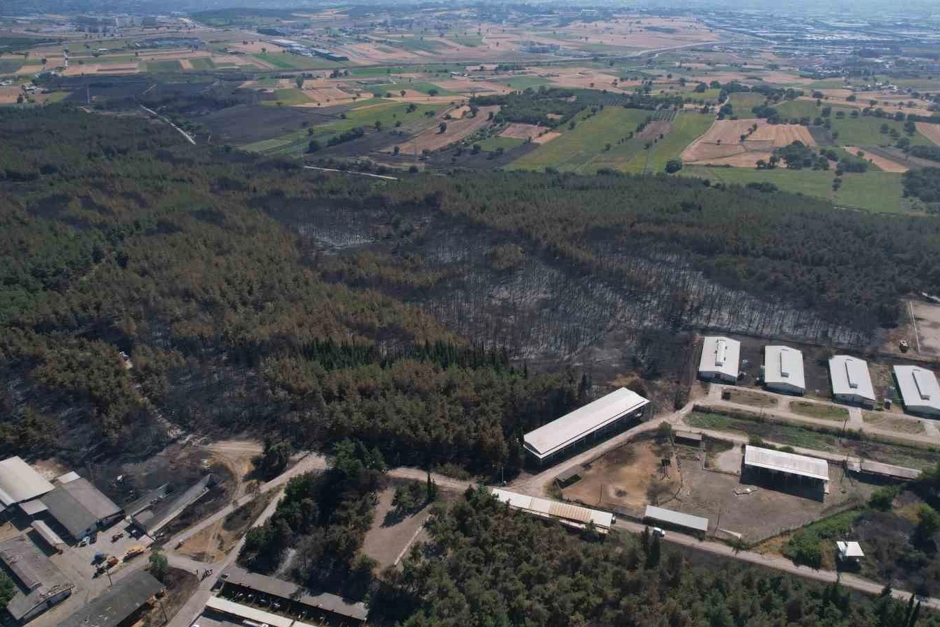 Sabahın ilk ışıklarıyla beraber Uludağ Üniversitesi’nin alevlere teslim olan Görükle kampüsü içindeki ormanlık alanları havadan dron ile görüntülendi. Görüntülerde çamlarla bezeli ormanlık alanın yeşilden griye dönmesi yürekleri dağladı.