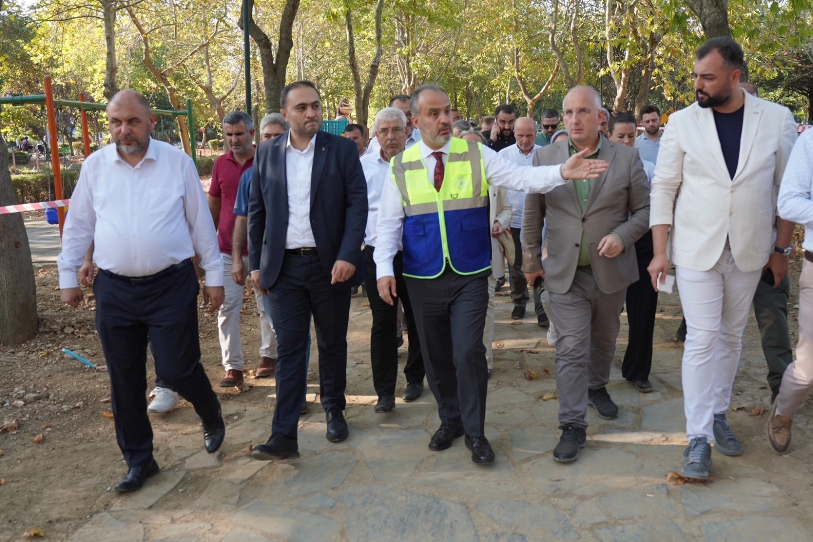Bursa Büyükşehir Belediye Başkanı Alinur Aktaş, beraberindeki Orhangazi Belediye Başkanı Bekir Aydın ile birlikte devam eden çalışmaları yerinde inceledi. Çevreyle alakalı önemli yatırımlar yaptıklarını ve bu konuda çok iddialı olduklarını belirten Aktaş, “Özellikle yeşille anılan şehrimizi daha da yeşile bezeyebilmek için 17 ilçemizde de 3 milyon metrekare yeşil alan hedefimiz istikametimizde önemli çalışmaları hayata geçiriyoruz. Şu an içinde bulunduğumuz park da aslında yıllardır Orhangazi'ye hizmet etmiş fakat özellikle son yıllarda yapılamayan revizyonlardan dolayı da özelliğini kaybetmiş atıl bir park. 66 dönümlük, içinde vatandaşların huzur içinde dinlenebileceği, çok güzel ağaçlarla kaplı bir alan. Aynı şekilde amfi tiyatrosu var. Farklı kafe mekanları var. Fakat yeşili de, yürüyüş yolları da, bordürü de, amfi tiyatrosu da eskimiş ve kötü durumda. Yenileme çalışmalarına başladık. Nasip olursa tamamını Eylül sonu itibariyle bitirmiş olacağız. Çalışmalarımızla birlikte halkımızın rahatça dolaşabileceği, daha güvenli 7/24 güvenlik olan, aydınlatmasıyla, sulama sistemleriyle, yürüyüş yollarıyla daha güvenli bir hale getirmiş olacağız. Hemşehrilerimiz burayı tekrar keşfedecekler” diye konuştu.