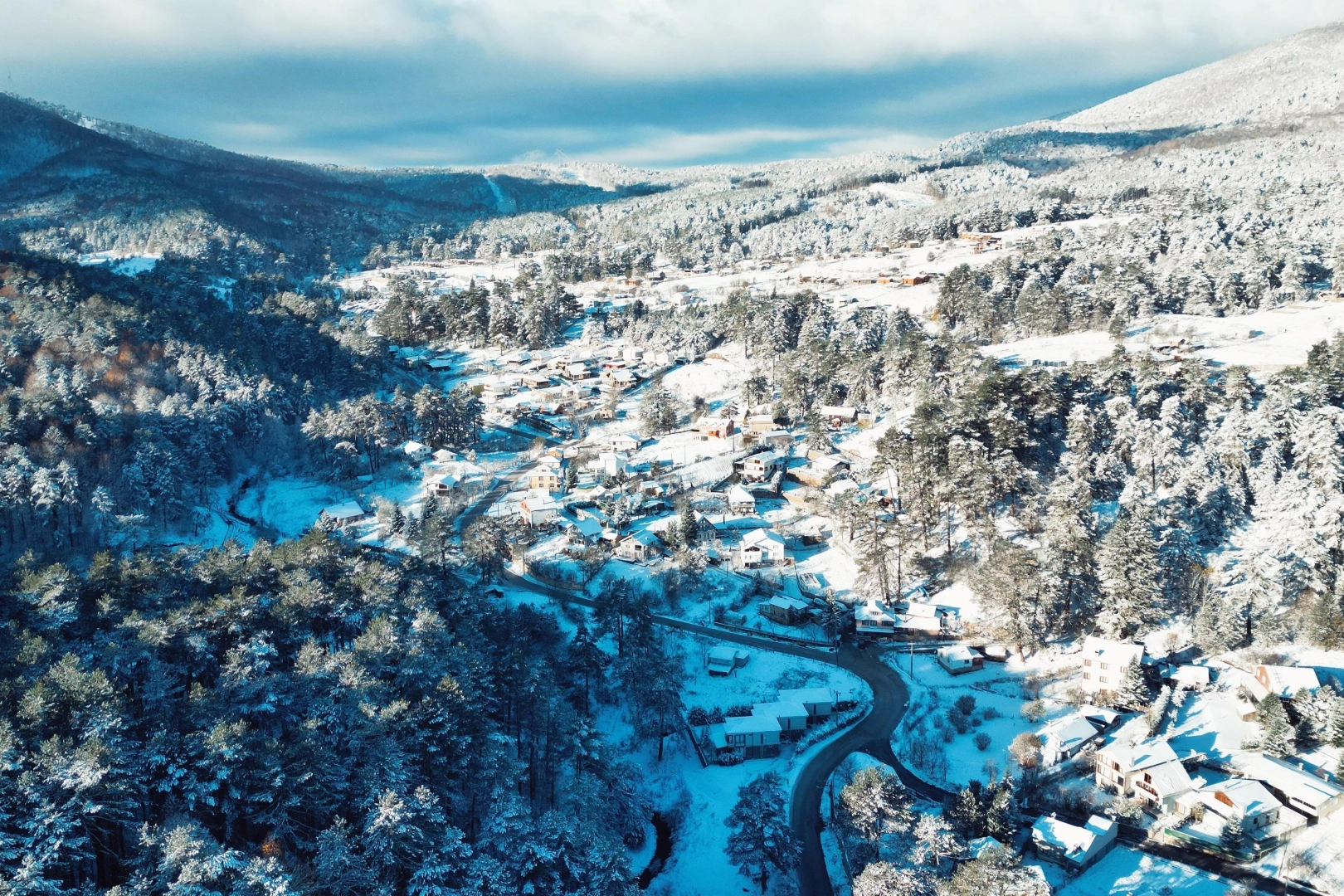 İnegöl'de pazar günü başlayan kar yağışı yüksek kesimlerde etkili oldu. İnegöl'ün yüksek kesimlerinden Boğazova bölgesi beyaz gelinliğini giydi.