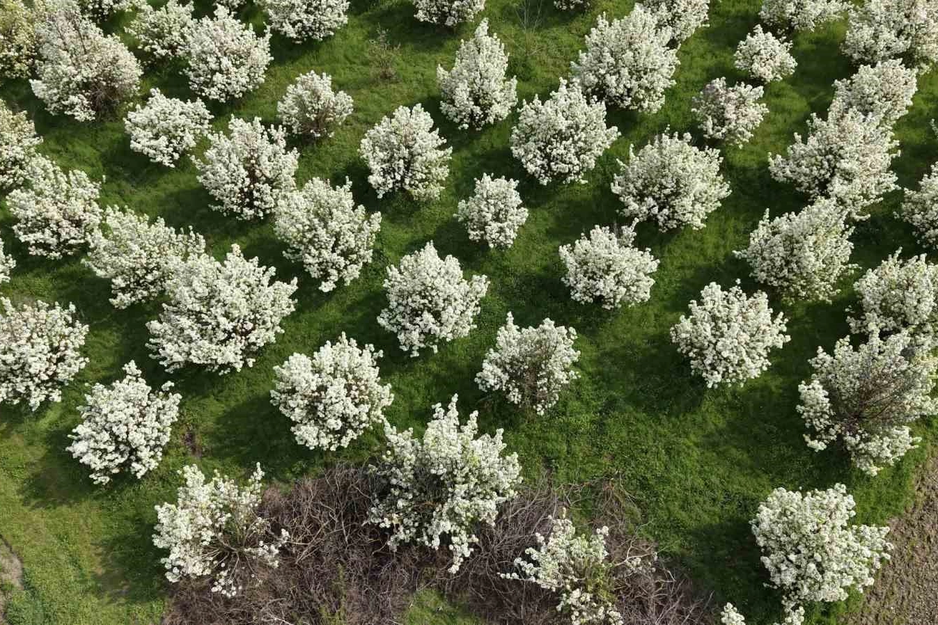 Özellikle kırsal mahallelerde yoğun olarak bulunan meyve bahçeleri, adeta gelinlik giymiş gibi bembeyaz bir örtüye bürünürken, ortaya kartpostallık manzaralar çıktı. Havaların ısınmasıyla birlikte çiçek açan ağaçlar, hem üreticilere yeni sezonun umutlarını yeşertti hem de doğaseverlerin ilgisini çekti.