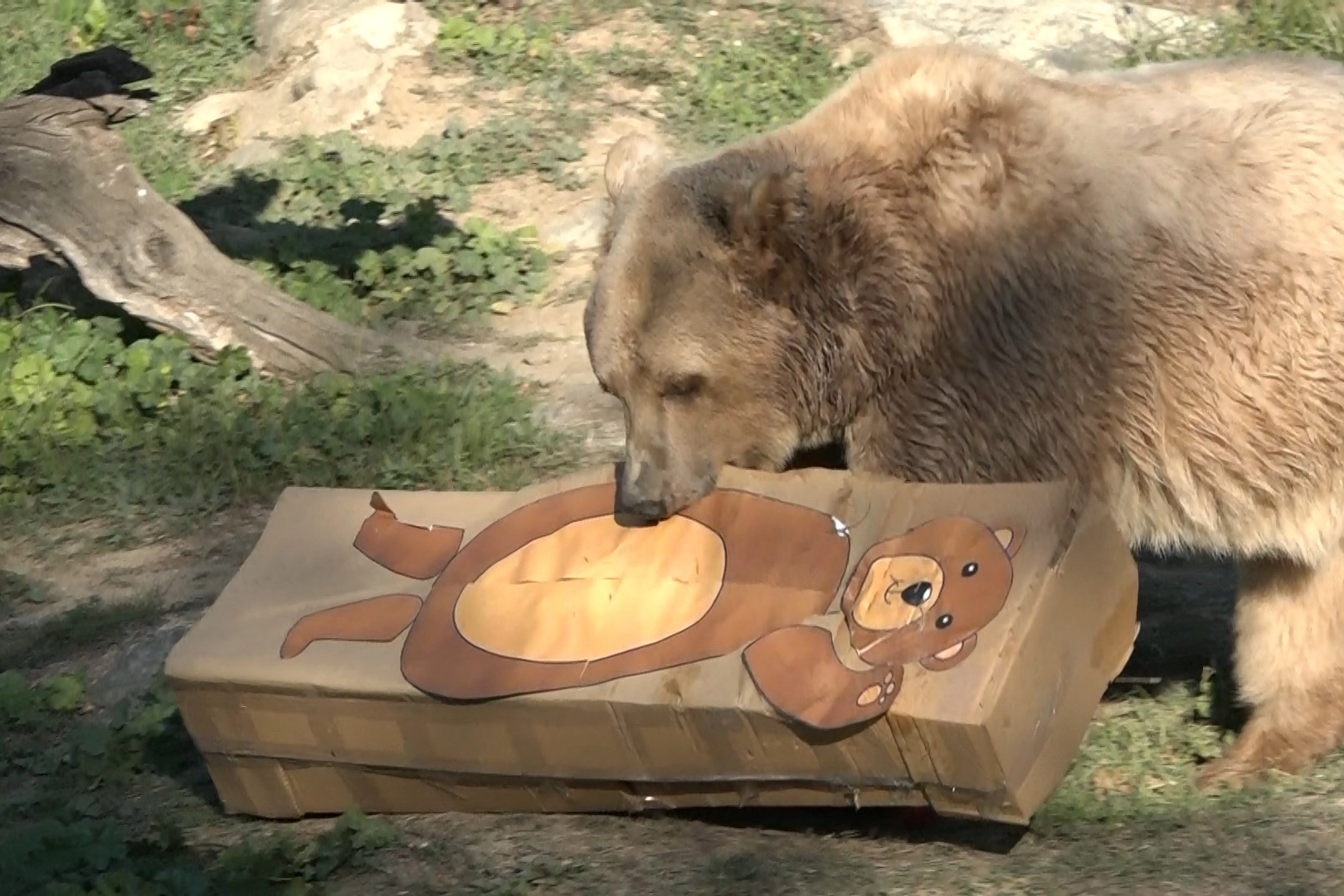 Bulundukları yerden alana gelen ayılar, ilk önce makete anlam veremedi. Temkinli yaklaşan ayılar, balığın kokusuna yaklaştıkça hızlarını arttırdı. Karton kutudan yapılan ayı maketini bir hamlede yerle bir eden ayılar, içine gizlenmiş balık, sebze ve meyveleri ise afiyetle midelerine indirdi.