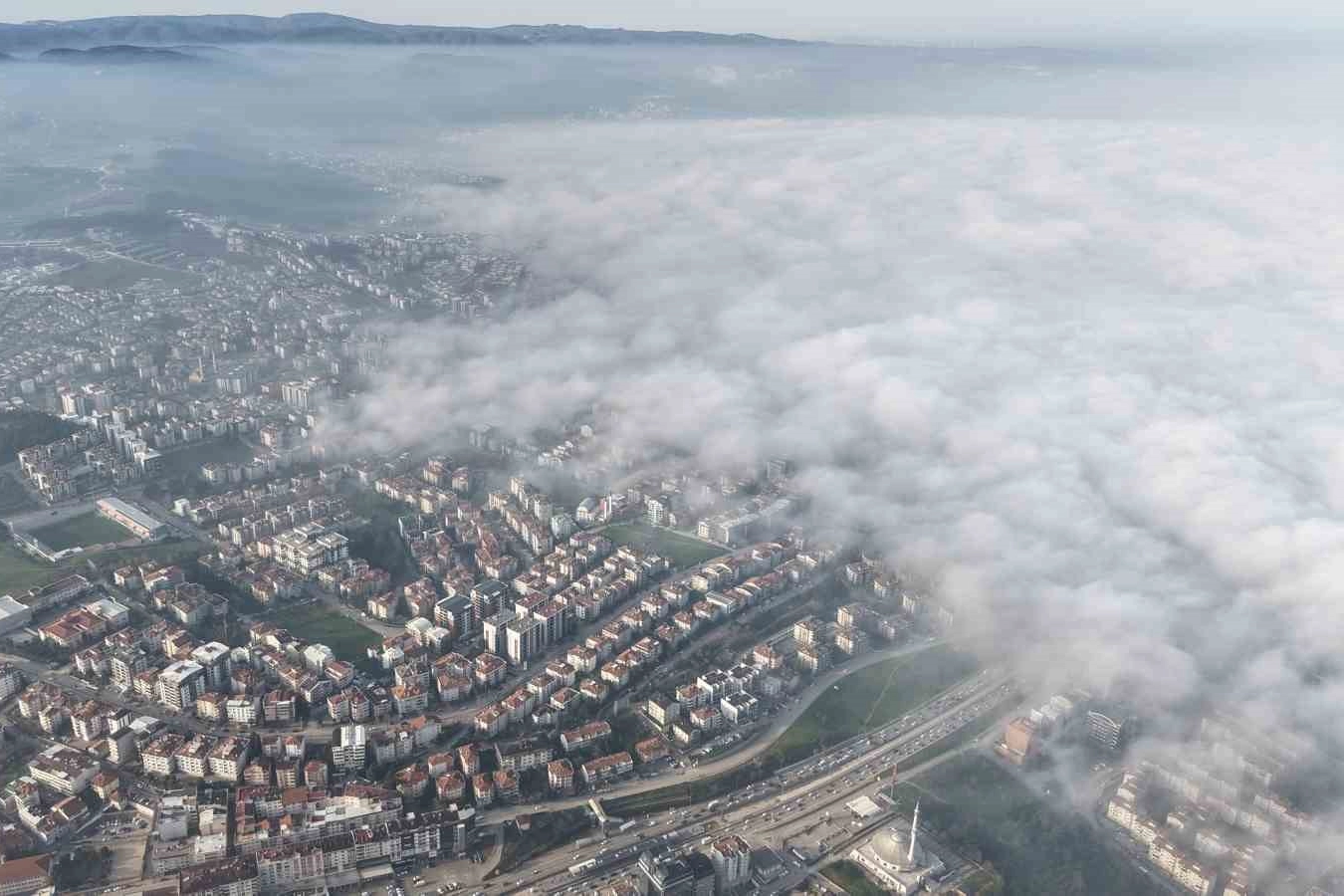 Sis bulutlarının üzerinde seyreden dron kamerası Şehrin bir ucundan diğer ucuna kadar oluşan manzarayı anbean görüntüledi. Film sahnelerindeki gibi bir manzara izleyenleri mest etti.