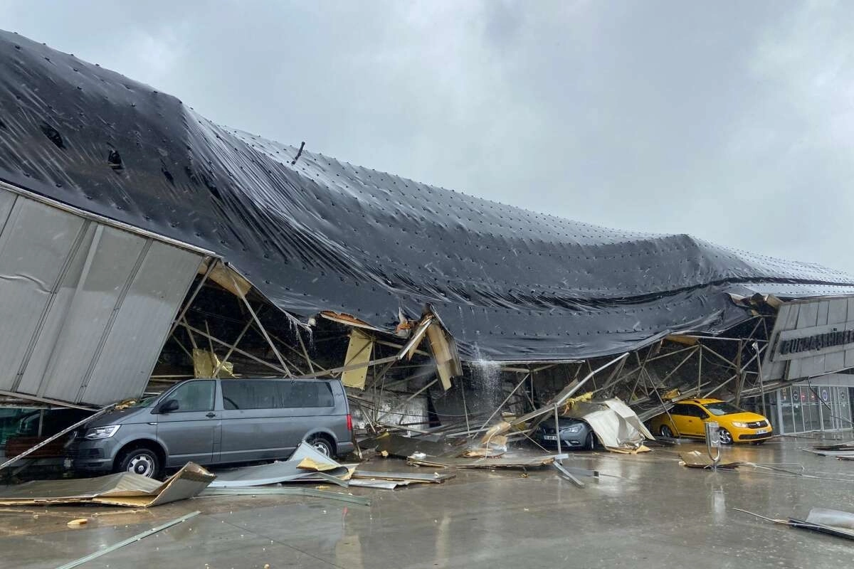 Meteoroloji Genel Müdürlüğü'nün uyarılarının ardından Bursa'da öğlenden sonra sağanak yağmur aniden bastırdı. Özellikle İstanbul yolu üzerindeki Şehirlerarası Otobüs Terminali'nde fırtına ve sel yolculara zor anlar yaşattı. Seferler bir süre iptal edilip yolcular özel güvenlikçiler tarafından içeride güvenli bölgeye alındı. Bu tedbirden 5 dakika sonra ise fırtına ve yıldırım düşmesi sonucu terminalin çatısı büyük bir gürültüyle çöktü. Olayda herhangi bir kimse yaralanmazken, üç araç çöken çatının altında kaldı.