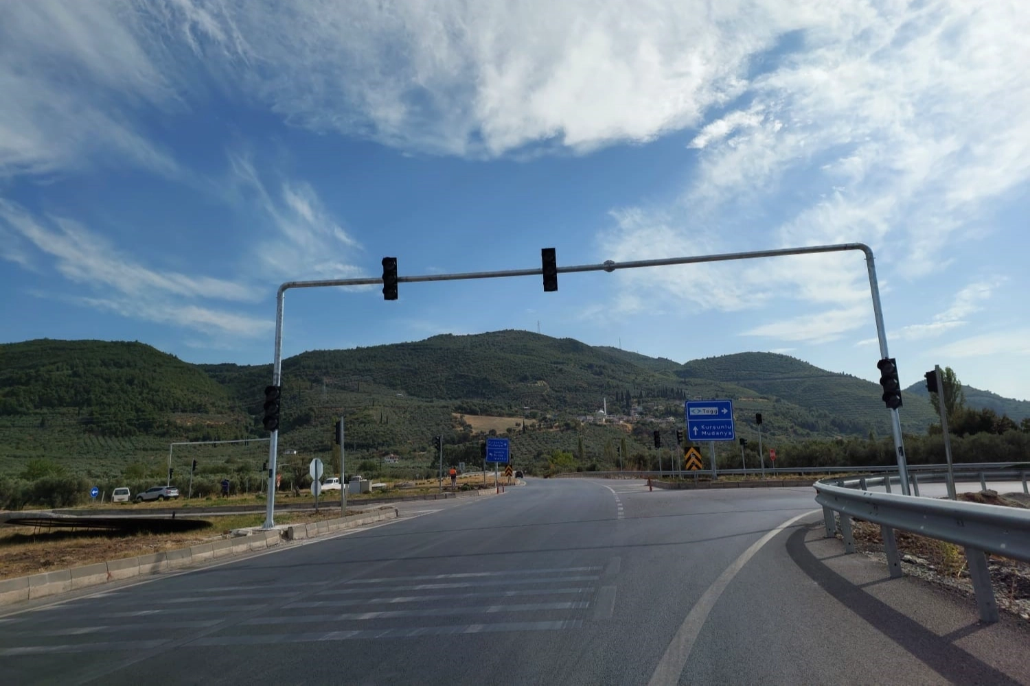 Gemlik'te Togg kavşağı olarak bilinen Kurşunlu yolu üzerindeki Togg otomobil fabrikası girişine sinyalizasyon sistemi kuruluyor.