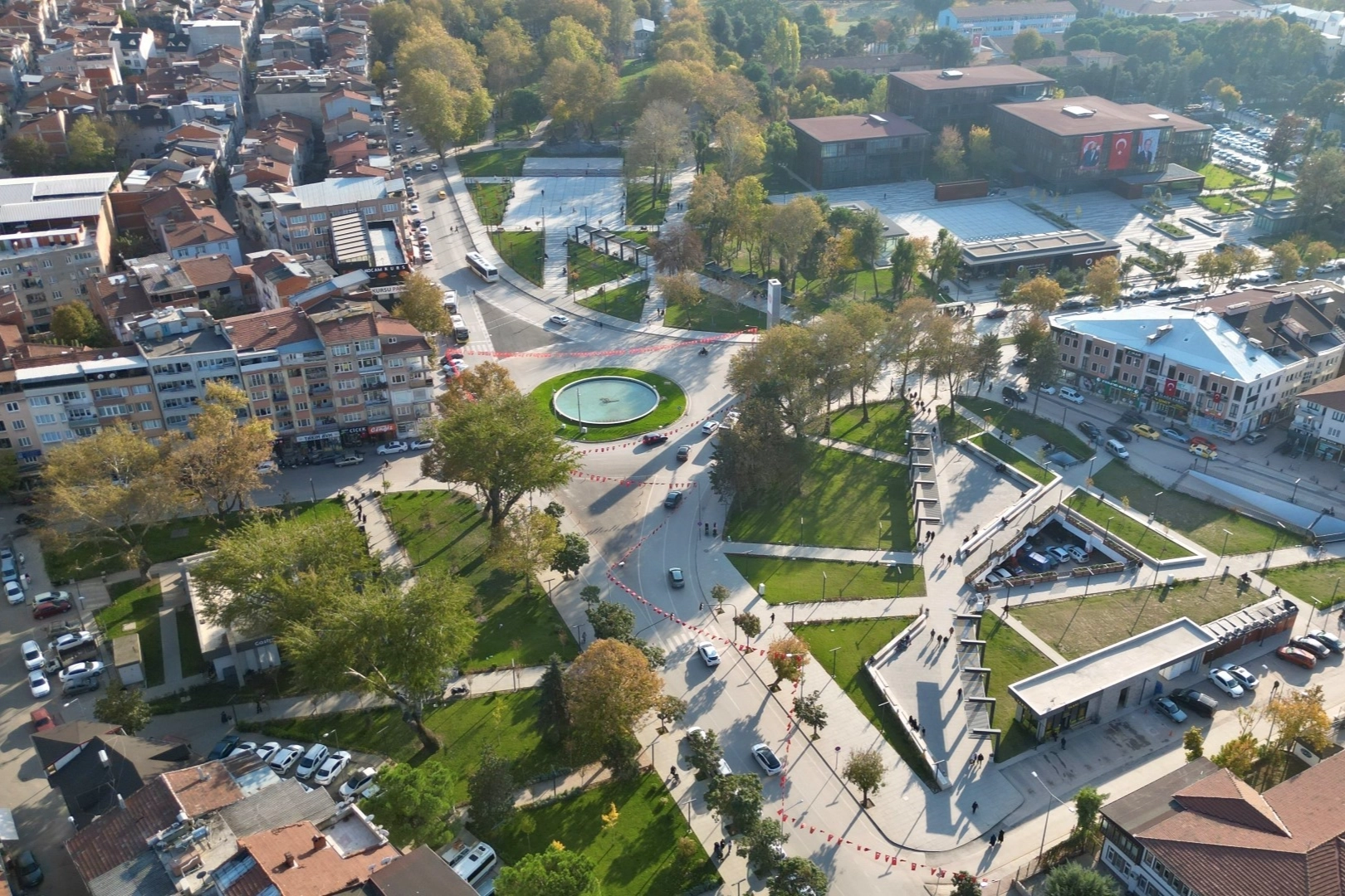 İnegöl Belediyesi, şehre modern ve sembol bir meydan kazandırmak için yaptığı planlama kapsamında merkezde köklü bir değişime imza attı. İlk olarak eski devlet hastanesinin bulunduğu alanda; yeni belediye hizmet binası, Nöbetçi Kitaphane, Gastro İnegöl restoranı, yer altı otoparkı, sergi salonu ve kafeteryanın yer aldığı bir yaşam alanı oluşturuldu. Ardından eski hükümet konağı ile hemen karşısında bulunan eski kaymakamlık lojmanı ve sedir kafenin yer aldığı alanda Merkez Park hayat buldu. Bu alanda da yer altı otoparkıyla beraber Gastro Kafe hizmet vermeye başladı. Son olarak Atatürk Anıtının olduğu bölgede yapılan düzenlemelerle bu 3 bölge aynı formlarda birbirlerini tamamlayacak şekilde İnegöl’ün Yeni Kent Meydanı ve Yaşam Alanını oluşturdu.