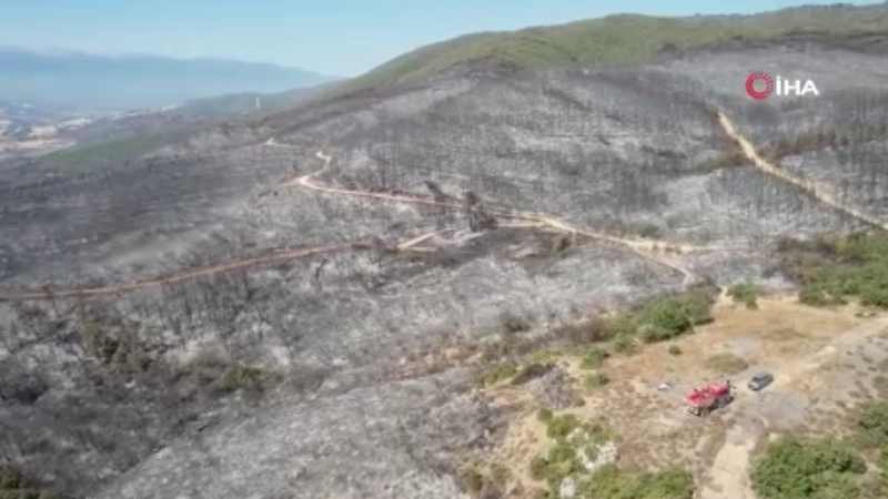 Yangının ardından ortaya çıkan içler acısı tablo ise havadan görüntülendi. Daha dün yemyeşil olan ormanlık alanın yerini gri bir örtü aldı. Yüzlerce ağacın kül olduğu bölgede, geriye sadece yanmış ağaçların gövdeleri ve is kokusu kaldı.