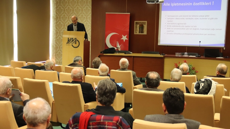 Aile işletmelerinin uzun süreli var olabilmesi için mutlaka “Aile Anayasası” kavramının ciddiye alınması gerektiğini vurgulayan Prof. Dr. Zeyyat Sabuncuoğlu, aile şirketlerinde mutlaka aile üyelerinden birinin işin başında olması gerektiğini aktardı. Prof. Dr. Zeyyat Sabuncuoğlu seminerde ayrıca konukların merak ettiği soruları cevapladı.