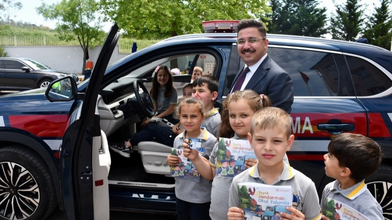 Etkinlik kapsamında öğrencilere çeşitli bilgilendirici materyaller dağıtılırken, İlçe Jandarma Komutanlığı’nın envanterindeki yerli ve milli otomobil Togg da öğrencilerin ilgisini çekti. Minikler, Togg ile hatıra fotoğrafları çektirerek keyifli anlar yaşadı.
