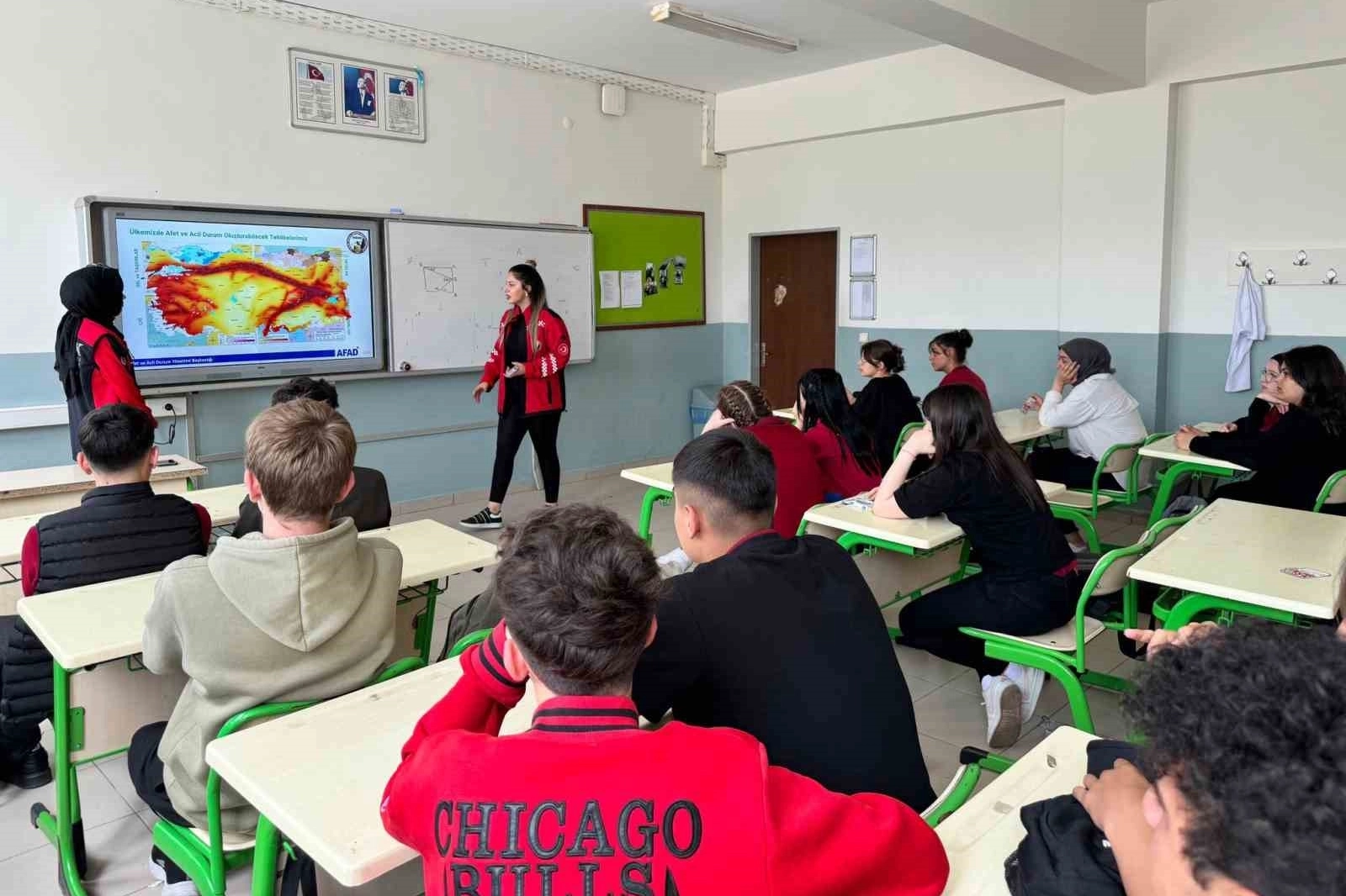 Hacı Sevim Yıldız-3 Mesleki ve Teknik Anadolu Lisesi öğrencilerine yönelik düzenlenen doğal afet farkındalık eğitimlerinde, İNDAK yöneticileri ile üniversite öğrencileri sınıflarda öğrencilere eğitimler verdi. Deprem çantası içeriği, deprem öncesi ve sonrasında yapılacaklar başta olmak üzere verilen eğitimlerin yanı sıra fotoğraf sergisi ile arama kurtarma ekipmanları tanıtımının yapıldığı sergi öğrencilerden büyük ilgi gördü.
