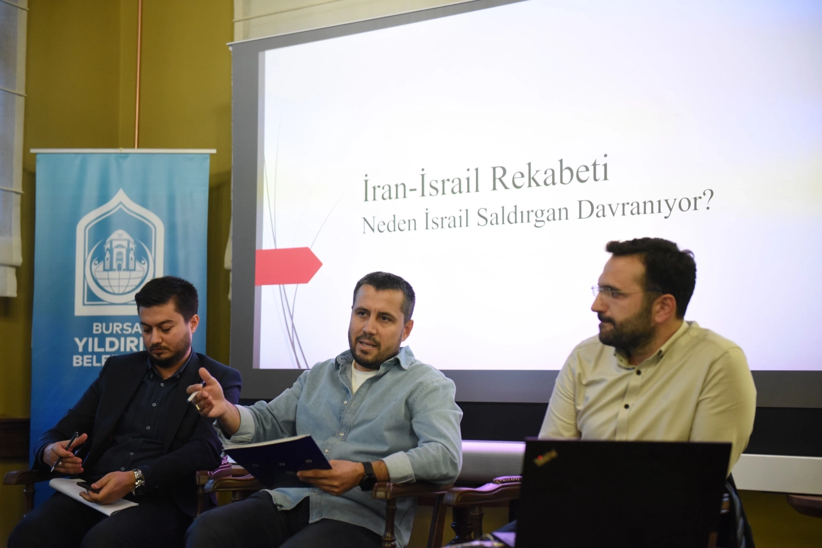 Yıldırım Belediyesi, Bursa Teknik Üniversitesi ile birlikte düzenlediği ‘Akademi Konuşmaları’nın startını verdi. Kentin kültür ve sanatta parlayan yeni yüzü olan Alev Alatlı Şehir Düşünce ve Sanat Merkezi’nde gerçekleştirilen program serisinin ilki Doç. Dr. İsmail Akdoğan, Dr. Öğretim Üyesi Furkan Polat, Dr. Öğretim Üyesi Mustafa Küpeli’nin anlatımıyla gerçekleştirilen ‘Ortadoğu’da Bölgesel Savaş Riski: İran-İsrail Gerilimi’ konu başlıklı söyleşi ile başladı. İki haftada bir Cuma günleri gerçekleştirilecek akademik programlar ile katılımcılar güncel meseleleri alanında uzman isimlerden dinleme ve tartışma imkanı bulacak.