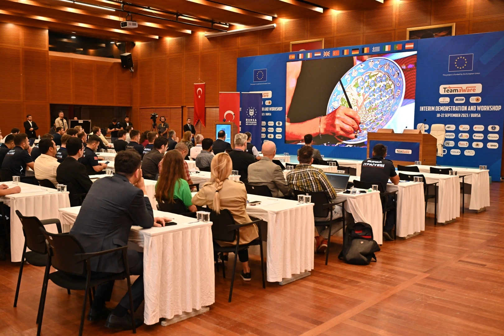Bursa Büyükşehir Belediyesi İtfaiye Daire Başkanlığı’nın ortak olduğu, HAVELSAN'ın koordinatör olarak başvurduğu "Team Aware" projesi 15 tam puanla 92 proje arasından birinci olarak seçilmişti. "Team Aware" aynı zamanda program çerçevesinde Türkiye'nin koordinatörlüğünü yapacağı ilk proje olurken proje, acil müdahale ekiplerini uzaktan takip eden, kapalı alanda yerlerini belirleyen, giyilebilir sensörler ve yapay zeka ile aktivitelerini tespit eden, giyilebilir kimyasal biyolojik radyolojik nükleer (KBRN) sensörler, akustik sensörler ve dronelar içeren bir sistemi kapsıyor. 5G ve taktik iletişim altyapısı sağlanarak toplanan veriler, gerçek zamanlı durumsal farkındalık resminin oluşturulmasını ve tüm acil müdahale ekibinin uzaktan takip edilmesini ve yönetilmesini sağlayacak. Projede ortak olarak HAVELSAN, Fraunhofer, Thales gibi büyük kuruluşlarla birlikte 13 farklı ülkeden toplam 24 kurum yer alıyor. Türk savunma sanayisinde yazılım tabanlı çözümleriyle dikkati çeken HAVELSAN projenin teknik ve idari koordinasyonunu yürütecek. HAVELSAN, Vücut Hareket Analizi (BMA-Body Motion Analysis) sistemindeki giyilebilir sensörlerle acil müdahale ekibinin hareketlerini uzaktan takip ve yapay zekayla aktivitesini tespit etmek, yorgunluk tespiti yapmak, KBRN modülü ile kimyasal bir saldırının yayılımını modellemek gibi sorumluluklar üstlenecek. Bursa Büyükşehir Belediyesi İtfaiye Daire Başkanlığı ayrıca, proje döngüsü içerisinde üretilecek teknolojiye katkı sunma ve proje tamamlandıktan sonra kullanma imkanına sahip olacak.