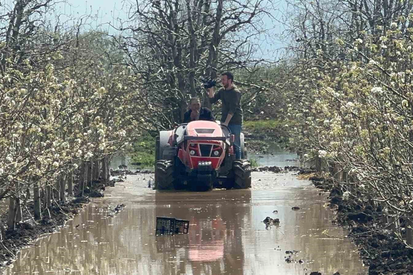 Armut bahçesine ilaçlama yapan üretici Turgay Koç ise yaşadıklarına zorluğa dikkati çekerek, "Traktörlere, bize, çiftçiye, meyve ağaçlarına yazık. 9 dönüm armut bahçemin büyük bölümü su altında. Bir hafta 10 gün su çekilmezse kurayacak. Önümüzdeki günler de yağışlı görünüyor, çaresisiz" diye konuştu.
