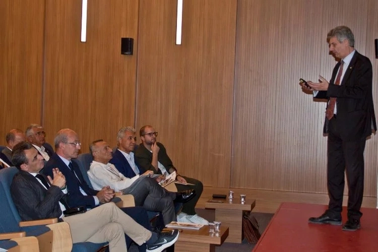 Nilüfer Organize Sanayi Bölgesi Müdürlüğü Toplantı Salonu’nda gerçekleşen toplantıda konuşan Küçükkayalar, “Sanayi tarım ve turizm ile gelişen, bunun için dijital, yeşil ve toplumsal dönüşümü gerçekleştirmiş bir Bursa için el ele diyerek yola çıktıklarını” söyledi. Küçükkayalar, sanayinin tarım alanlarına dokunmadan bu üç alanın birlikte uyum içinde yaşama olanağının olduğunu da rakamlarla açıkladı.