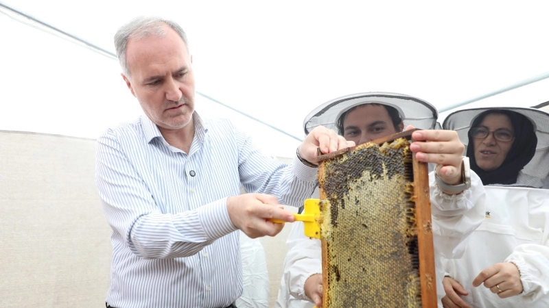 İnegöl Belediye Başkanı Alper Taban ise amaçlarının sadece bal hasadı yapmak olmadığını, burada bir farkındalığı arttırma çabası olduğunu söyledi. Aynı zamanda arıcılığın bilinçli şekilde yapılmaya devam etmesini istediklerini vurgulayan Başkan Taban, “Kaliteyi ve verimi arttırma gibi arka planda hedeflerimiz var. Yerel yönetimler olarak bizler tüm üreticilerimizin yanında olmaya devam edeceğiz. Arının da ne kadar kıymetli ve değerli olduğunu işin içine girince anlıyorsunuz. Arıyı yaşatmamız lazım. Arı yaşarsa arkada bütün ekosistem dengeye gelmiş oluyor. Arka planda yaşanan ilaçlama ve benzeri sorunları da mutlaka düzeltmemiz gerekiyor. Düzeltmediğimiz zaman ekosistemin de aslında bozulmasını sağlıyoruz. Dolayısıyla bunun önüne geçmemiz lazım” diye konuştu.