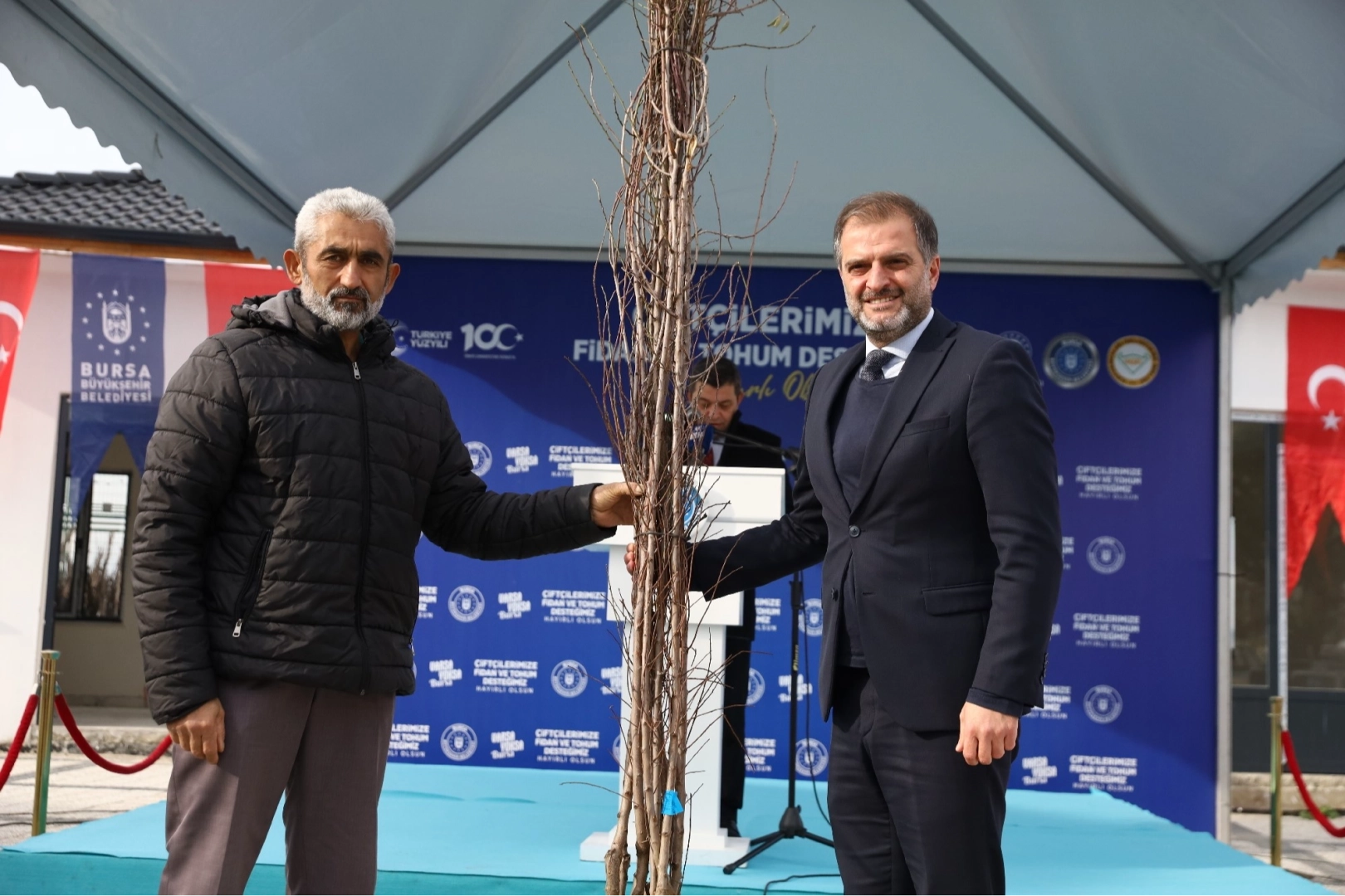 Büyükşehir Belediyesi’nin her zaman çiftçinin yanında olduğunu çok iyi bildiklerini kaydeden Harmancık Belediye Başkanı Yılmaz Ataş ise, “Biz her zaman çiftçimize daha faydalı nasıl oluruz, üretimlerimize nasıl katkı sağlarız diye düşünüyoruz. Bu ürünlerimiz inşallah bereketli topraklarımızla buluşarak, yetiştiricilerimize ve ülke ekonomisine katkı sağlayacak. Hayırlı, uğurlu olsun’ dedi. Konuşmalarından ardından protokol üyeleri tarafından çiftçilere kiraz, badem, ceviz fidanı ve korunga tohumları teslim edildi.