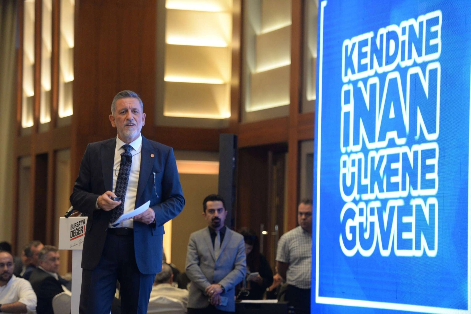 BTSO Yönetim Kurulu Başkanı İbrahim Burkay, 2013 yılından bu yana Bursa iş dünyasının çatı kuruluşu BTSO’da hayata geçirdikleri projeleri ve yeni döneme ilişkin hedeflerini iş dünyasının yoğun katılım sağladığı toplantıda paylaştı. Programa BTSO Meclis ve Meslek Komitesi ile Yüksek İstişare Kurulu üyelerinin yanı sıra iş dünyası kuruluşlarının temsilcileri, OSB başkanları ve SİAD’ların yöneticilerinin yer aldığı bin aşkın iş adamı katıldı. Programda son 10 yılda yaptığı çalışmalar ve gelecek hedeflerine ilişkin detaylı bir sunum yapan BTSO Yönetim Kurulu Başkanı Burkay, "İnsanoğlunun sınırlarını belirleyen hayalleridir. Önce hayal eder, sonra o hayalin peşinden koşarsınız. 25 Mart 2013 tarihinde yine bu salonda bir araya geldiğimiz toplantıda Bursa’mız için kurduğumuz hayalleri paylaşmıştım. İnsanların olduğu gibi kentlerin de hayatında dönüm noktaları vardır. Ne zaman kiminle, hangi adımları attığımız geleceğimizi belirler. Şükürler olsun ki eşine az rastlanır bir ortak akıl ve iradeyle yaklaşık 10 yılda kent ve ülke ekonomisinin tarihine birçok makro projeyi hayata geçirdik. Neyi başardıysak iş dünyamızın desteğiyle başardık. Biliyoruz ki ne yapsak Bursa’mız için az. Ne yaptıysak Bursa’ya değer” diye konuştu. "BTSO teknoloji ve eğitim adası iş dünyasına ufuk kazandırıyor" İş dünyası buluşmasında BTSO’nun 2013 yılından bu yana hayata geçirdiği 60’ı aşkın projeye ve gelecek hedeflerine ilişkin detaylı bir projeksiyon sunan Burkay, BTSO öncülüğünde Büyükşehir Belediyesi ve TÜBİTAK destekleriyle hayata geçen Gökmen Uzay Havacılık Eğitim Merkezi’nin (GUHEM) Avrupa’nın en büyük deneyim merkezlerinden birisi olduğunu kaydetti. Uludağ Yaşam Boyu Eğitim Merkezi’nin Avrupa’da ve dünyada birçok örneği olan iş dünyasının en önemli referans merkezlerinden birisi olarak kurgulandığını dile getiren Burkay, DOSAB’daki BTSO Teknoloji ve Eğitim Adası’nda yer alan BUTGEM, BUTEKOM, Model Fabrika, BTSO Mutfak Akademi, MESYEB ve EVM’nin iş dünyasına önemli hizmetler sunduğunu ifade etti. "Daha fazla ihracat için çalıştık” Küresel Fuar Acentesi ve UR-GE projeleri gibi ihracat odaklı hamlelerin Bursa’daki ihracatçı sayısının artmasında önemli rol oynadığını ifade eden Burkay, ”Milli katılımlı fuar düzenleme yetkisine sahip KFA Fuarcılık şirketimiz, ev tekstili alanında dünyanın en büyük fuarlarından olan HOMETEX Fuarı’nı başarıyla gerçekleştiriyor. Oda olarak Ticari Safari Projemizle 100 ülkeden 25.000’den fazla alıcıyı kentimize getirdik. Ticaret Bakanlığımızın destekleriyle düzenlenen UR-GE Projelerimiz üyelerimizin dünya ile rekabetinde önemli bir avantaj sağlıyor. Bu projelerimiz sadece dış ticaretimize değil, turizm ve ticaret hayatına da katkı sağlıyor. Bir diğer projemiz olan Lojistik AŞ ile de Yenişehir Havalimanı'nı hava kargo alanında farklı bir konuma getirmek istiyoruz” dedi. Yeni nesil fuar atağı Burkay, BTSO’nun vizyonuyla fuarcılıkta Bursa’yı stratejik bir merkez haline geldiğini ifade ederek, “Şu anda kentimizde uluslararası düzeyde 18 fuar düzenleniyor. Dünyada tek olan blok mermer fuarını Bursa’da gerçekleştiriyoruz. Fuar açılmadan tüm mermerlerin satıldığı bir organizasyon. Bebe ve çocuk konfeksiyon sektöründe senede iki fuar düzenliyoruz. Bursa Textile Show Fuarımızı Merinos AKKM’den fuar merkezimize taşıyacağız. Sadece üretim merkezi olmak yetmez. Ürettiğinizi katma değerli bir şekilde dünyadaki alıcılarla buluşturulması lazım. Yeni nesil fuarcılıkla Bursa’yı farklı bir noktaya getirmek istiyoruz” diye konuştu. BTSO Tahkim ve Arabuluculuk Merkezi’nin Altıparmak’taki hizmet binasında faaliyet gösterdiğini ifade eden Burkay, merkezden faydalanan bir firmanın New York’ta 15 milyon dolara yakın bir tahkim davasını kazanmayı başardığının da altını çizdi. “TEKNOSAB’da üretime başlayan fabrika sayısı artıyor” Burkay, Türkiye’nin yüksek teknolojili ilk OSB’si olan TEKNOSAB Projesi’nde fabrika inşaatlarının sürdüğünü, birçok fabrikada çarkların dönmeye başladığını dile getirdi. Bölgenin otoban ve raylı sistem hatlarıyla entegre olacağının altını çizen Burkay, “Şu anda TEKNOSAB’da çalışan sayısı yaklaşık 2 bin. Bölgede her geçen gün yeni fabrikalar açılıyor. TEKNOSAB tamamlandığında çatılardaki güneş enerjisi 1.2 gw olacak. Yeni düzenleme sonrasında bölgede 3 gw olacak. TEKNOSAB’da ayrıca Türkiye’nin en büyük GES projesi hayata geçecek” şeklinde konuştu. “Bursa başarı hikayesini yazan bir şehir” Bursa’nın ihracatının kilogram değerinin 4.51 dolar, hedefinin ise 8 dolar olduğunu belirten Burkay, “Bu hedefe ulaşırsak ülkemizin hedeflerine daha fazla katkı sağlarız. Her büyük ekonominin başarı hikayesini yazan bölgeler var. Türkiye’nin dünyanın 10 büyük ekonomisine girmesini sağlayacak 8-10 şehir var. Bursa da bu şehirlerin başında geliyor. Türkiye’de 10 tane Bursa olsa ülkemizin kronik birçok sorunu ortadan kalkacak” ifadelerini kullandı. “Kentimizin hedeflerine güç katacak” İbrahim Burkay, “BEBKA'nın raporuna göre OSB dışında kalan alanlarda sanayi sicil belgesine sahip 8 bini aşkın tesis var. Kent içindeki plansız sanayi alanlarında sıkışmış, büyümekte zorlanan KOBİ’ler için daha yeni ve modern planlı sanayi alanları oluşturulması gerekiyor. Bu noktada 2017 yılında KOBİ OSB projesi için talep topladık. 2 bin 556 üyemiz taşınmak istediğinin taahhüdünü verdi. Bursa’mız akıllı şehircilik modeli ve mekânsal planlamayla Türkiye’nin kalkınma hedeflerindeki liderlik rolünü daha da güçlendirebilecektir" açıklamalarında bulundu. Yeni 