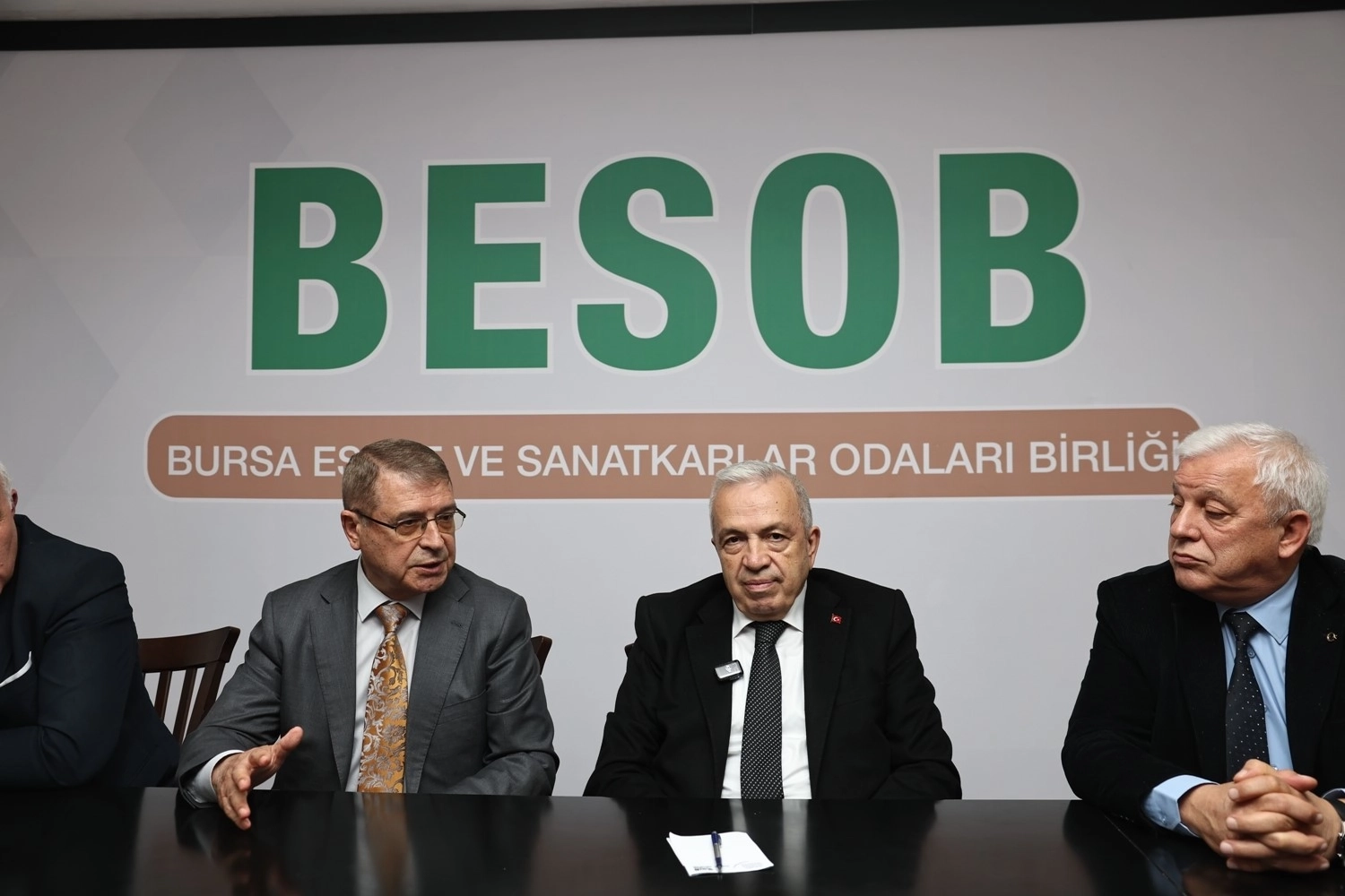 BESOB Başkanı Fahrettin Bilgit de ziyaretten duyduğu memnuniyeti ifade ederek, “Ülke olarak zor günlerden geçiyoruz. Esnaf bu durumdan en fazla yara alan kesim. Sorunlarımız var, çözüm önerilerimiz de var. Bunları sizin de dediğiniz gibi bir araya gelerek ortak fikirlerle çözebiliriz. Nilüfer’de bir esnaf çarşısı kurmak gibi düşüncemiz var. Oda başkanlarımızla bunu masaya yatırıp hem ticaret hem de şehre katkı açısından değerlendirebiliriz. Yanımızda olduğunuzu görmek samimiyetinizi hissetmek bize mutluluk veriyor” diye konuştu. Ziyarette diğer oda başkanları da yaşadıkları sıkıntıları dile getirerek, destek beklediklerini ifade etti.