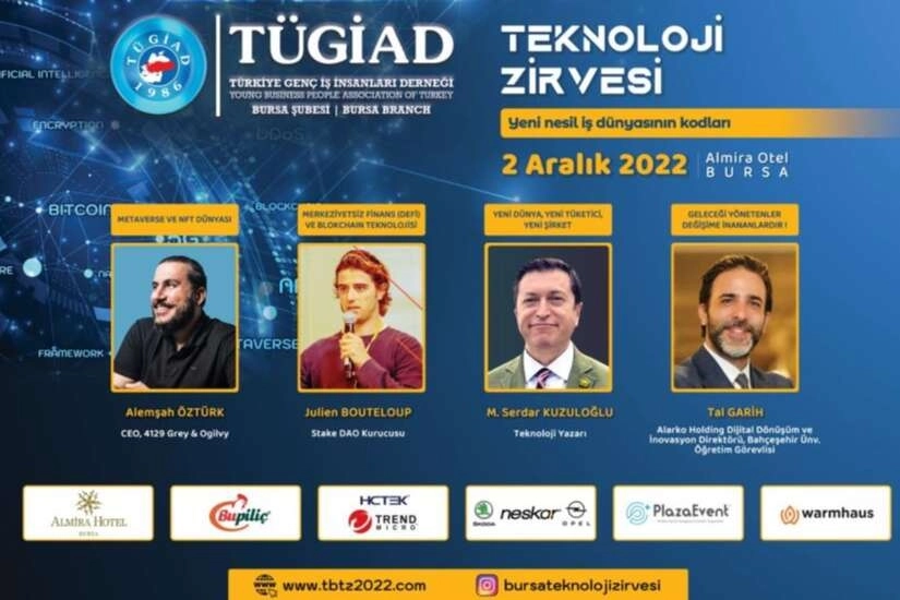 Bu zirvede yer almak isteyen katılımcılar www.tbtz2022.com adresinden kayıt yaptırabilecek. Teknoloji Zirvesi’nin önemine değinen TÜGİAD Bursa Şubesi Başkanı Ahmet Parseker, “Teknolojinin hayatımızdaki yerinin hızla artması ile birlikte bilginin kadim değeri her geçen gün daha da iyi anlaşılıyor. Dünyada yaşanan ekonomik gelişmeleri yakından takip etmek hedefiyle TÜGİAD Bursa Şubesi olarak birçok farklı etkinlik düzenliyoruz. 2 Aralık’ta gerçekleştireceğimiz teknoloji zirvesi de bunlardan en değerlisi. Çünkü uluslararası alanda kendini ispatlamış ve dijital değişime yön vermiş konuşmacıları ağırlayacağız. BLOKCHAIN, METAVERSE, NFT, Web3.0 kavramlarının konuşulacağı teknoloji zirvesi ile katılımcılar, yeni dünyada değişimin gücünü hissederek geleceği yönetme fırsatı yakalayabilecek“ dedi.