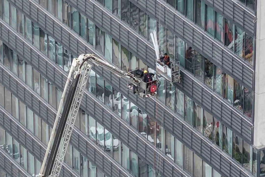 İtfaiye sepetiyle aşağıya indirilen işçilerin sağlık durumunun iyi olduğu belirtildi. Polis ekipleri olayla ilgili soruşturma başlattı. Yüzlerce kişi de kurtarma operasyonunu meraklı gözlerle izledi.