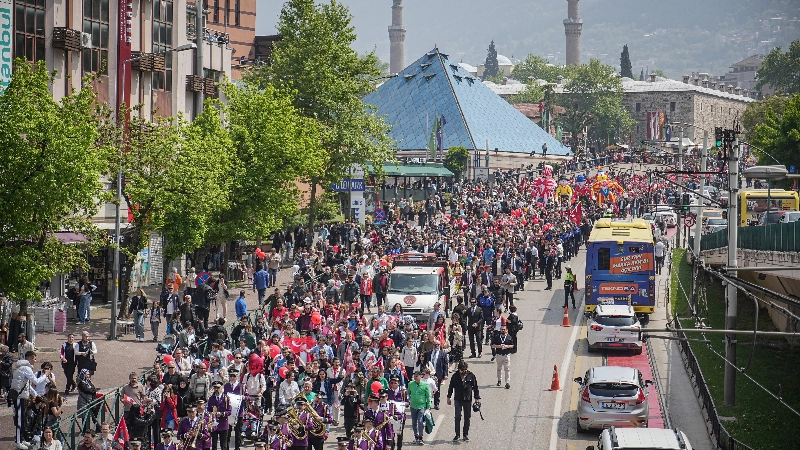 23 Nisan Ulusal Egemenlik ve Çocuk Bayramı tüm Türkiye'de olduğu gibi Bursa'da da büyük bir coşkuyla kutlandı. Bursa Büyükşehir Belediyesi tarafından 'Onların Gülüşü Hepimizin Yarını' teması ile hazırlanan '23 Nisan Çocuk Şenliği'nde çocuklar, dolu dolu program içeriğiyle unutulmaz bir gün geçirdi. 23 Nisan coşkusu, yüzlerce çocuk ve ailelerinin katılımıyla Altıparmak Caddesi'nden Merinos Parkı'na doğru yapılan kortej yürüyüşüyle başladı. Ellerindeki Türk bayraklarıyla marşlar söyleyerek ve şiirler okuyarak yürüyen çocuklara, Büyükşehir Belediye Başkanı Mustafa Bozbey ve eşi Seden Bozbey ve CHP İl Başkanı Nihat Yeşiltaş da eşlik etti.