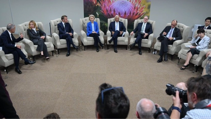 Avrupalı ülkelerden ve Ukrayna’yı destekleyen diğer ülkelerden yetkililer, Güney Afrika’daki G20 Zirvesi’nde ABD’nin Rusya-Ukrayna Savaşı’nı sona erdirmeyi amaçlayan 28 maddelik planına ilişkin görüşme gerçekleştirdi. Ukrayna destekçisi Avrupa ülkelerinin liderleri görüşmede ABD’nin 28 maddelik barış planına verilecek cevaba ve kendi önerilerine ilişkin başlıkları ele aldı. Önce G20 zirvesine katılan Almanya, İngiltere ve Fransa’dan oluşan "Avrupa Üçlüsü" (E3) ülkelerinin liderleri Almanya Başbakanı Friedrich Merz, Fransa Cumhurbaşkanı Emmanuel Macron, İngiltere Başbakanı Keir Starmer bir araya geldi. Söz konusu toplantıya ilişkin Merz, Macron ve Starmer birlikte oldukları toplantıdan bir fotoğrafı sosyal medya üzerinden paylaşarak, "Dostlar, ortaklar, müttefikler Ukrayna'ya destekte birleştik" ifadelerini kullandı.Geniş katılımlı bir toplantı gerçekleştirildi