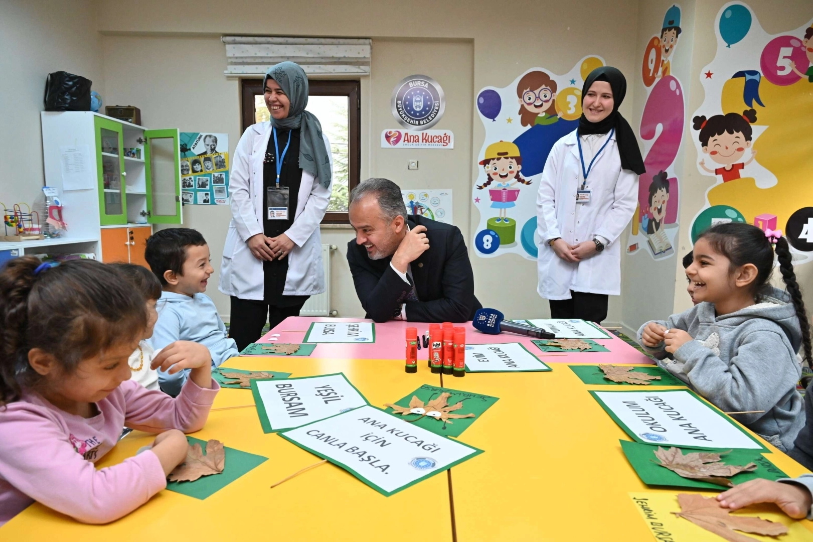 Büyükşehir Belediyesi’nin ‘dar gelirli ailelerin çocuklarının da okul öncesi eğitim hizmetlerinden faydalanabilmesi amacıyla’ 2019 yılında 6 merkezle başlattığı ve bugün adeta dev bir eğitim kurumuna dönüşen Ana Kucaklarında, Milli Eğitim müfredatının yanında ‘Şehrim Bursa’ dersi ile miniklere Bursa’nın değerleri de anlatılıyor. Bu yıl 21 merkezde, 180 öğretmen ve yaklaşık 2 bin öğrenci ile eğitimlerin devam ettiği Ana Kucaklarında, ‘Şehrim Bursa’ dersinin ‘Başkanımızı Tanıyalım’ konusu işlenirken, minik öğrenciler büyük sürprizle karşılaştı. Şirinevler Ana Kucağı’nı ziyaret eden Büyükşehir Belediye Başkanı Alinur Aktaş, hem minik öğrencilere kendini tanıttı hem de onlarla sohbet etti. Oldukça keyifli geçen derste çocuklar, Başkan Aktaş’a Hacivat Karagöz gösterisi sundu, şarkılar söyledi. Yeni Ana Kucakları geliyor Ana Kucaklarında miniklerin heyecanını gördükçe kendisinin de çok mutlu olduğunu belirten Başkan Aktaş, ‘Şehrim Bursa’ dersi çerçevesinde Bursa’nın değerlerinin de çocuklara anlatıldığını söyledi. Zaman zaman yapılan gezi programları ile çocuklara Bursa’yı tanıttıklarını dile getiren Başkan Aktaş, “Çocuklar bizim geleceğimiz. Onların donanımlı bir şekilde hayata hazırlanması tek amacımız. ‘Başkanı tanıyalım’ dersini işlerlerken geldim, hem kendimi tanıttım hem de heyecanlarına ortak oldum. Ana Kucaklarımızın sayısını daha artıracağız. Yeni Ana Kucakları ile daha fazla öğrencimizle bir araya gelmiş olacağız” dedi.