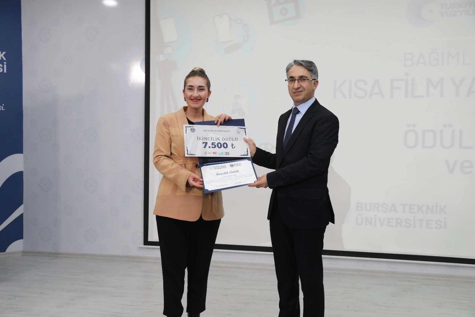 ÖDÜL ALAN FİLMLER Konuşmaların ardından dereceye girenlere, protokol üyeleri tarafından ödülleri verildi. Yarışmada birinciliği ‘Bağımlılık' filmiyle Ahmet Baha Coşkun alırken, 2'nci olan film ise Ayça Seymenoğlu Baş'ın ‘Boşluk' filmi oldu. ‘Benim Canım' filmiyle Ömer Bilal Aslan da üçüncülüğe layık görüldü. B4N filmiyle Beyza Yıldır, Kibrit filmiyle Fatma Zehra Sultan ve Sütlach filmiyle Ahmet Duvar mansiyon ödülü almaya hak kazandı.