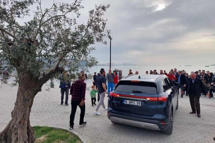 Bu arada Gemlik Mavisi rengiyle TOGG, Gemlik sahilinde ilçe halkıyla buluştu. Gemlikli vatandaşlar TOGG’la resim çektirmek ve yakından görmek için birbiriyle yarıştı.