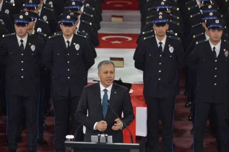 Mezun olan öğrencilerin artık İçişleri Bakanlığı ailesinin bir ferdi olduklarını kaydeden Bakan Yerlikaya, şunları söyledi: "Nene Hatun'un diyarında, bu şanlı üniformayı kuşandınız. Büyük bir milli bilinç ve vazife şuuruyla, cennet vatanımızın dört bir köşesinde görev yapacaksınız. Eğer sokaklarımızda, caddelerimizde, şehirlerimizde huzur olacaksa bu sizlerin sayesinde olacak. Milletimiz evinde başını yastığına güvenle koyacaksa, bu sizlerin emeği ve fedakârlığıyla olacak. Sokaklarımızda, şehirlerimizde her türlü suç ve suçluyla amansız şekilde mücadele edeceksiniz. Teröre, zehir tacirlerine, kaçakçılara, organize suç örgütlerine göz açtırmayacaksınız. Hukuka bağlılıktan asla ayrılmayacaksınız. Kanunların size verdiği yetkiyi kullanırken sınırları asla aşmayacaksınız. Meslek hayatınız boyunca kanundan, hukuktan, ahlaktan, milletimize bağlılıktan ve devletimize sadakatten asla ayrılmayacaksınız. En puslu gecelerde dahi, daima sizlere doğru yolu gösterecek olan vicdan pusulanızı takip edeceksiniz! Asla aklınızdan çıkarmayın. Artık sizler, İçişleri Bakanlığı ailesinin birer ferdisiniz. Hepimizin tek bir gayesi var; o da aziz milletimizin huzuru ve güvenliğidir. Suç odaklarıyla daha etkin mücadele etmek için emniyet teşkilatımızın yapısını her geçen gün güçlendiriyoruz. Yeni imkânlar ve teknolojilerle kabiliyetimizi artırmaya, aramıza katılan siz ve sizler gibi kahramanlarımızla da büyümeye devam edeceğiz. İnsanımızın can ve mal güvenliğine tehdit oluşturan her türlü suç ve suç örgütü ile mücadeleyi Sayın Cumhurbaşkanımızın liderliğinde ve sizlerin üstün gayretleriyle hep birlikte kararlılıkla sürdüreceğiz."