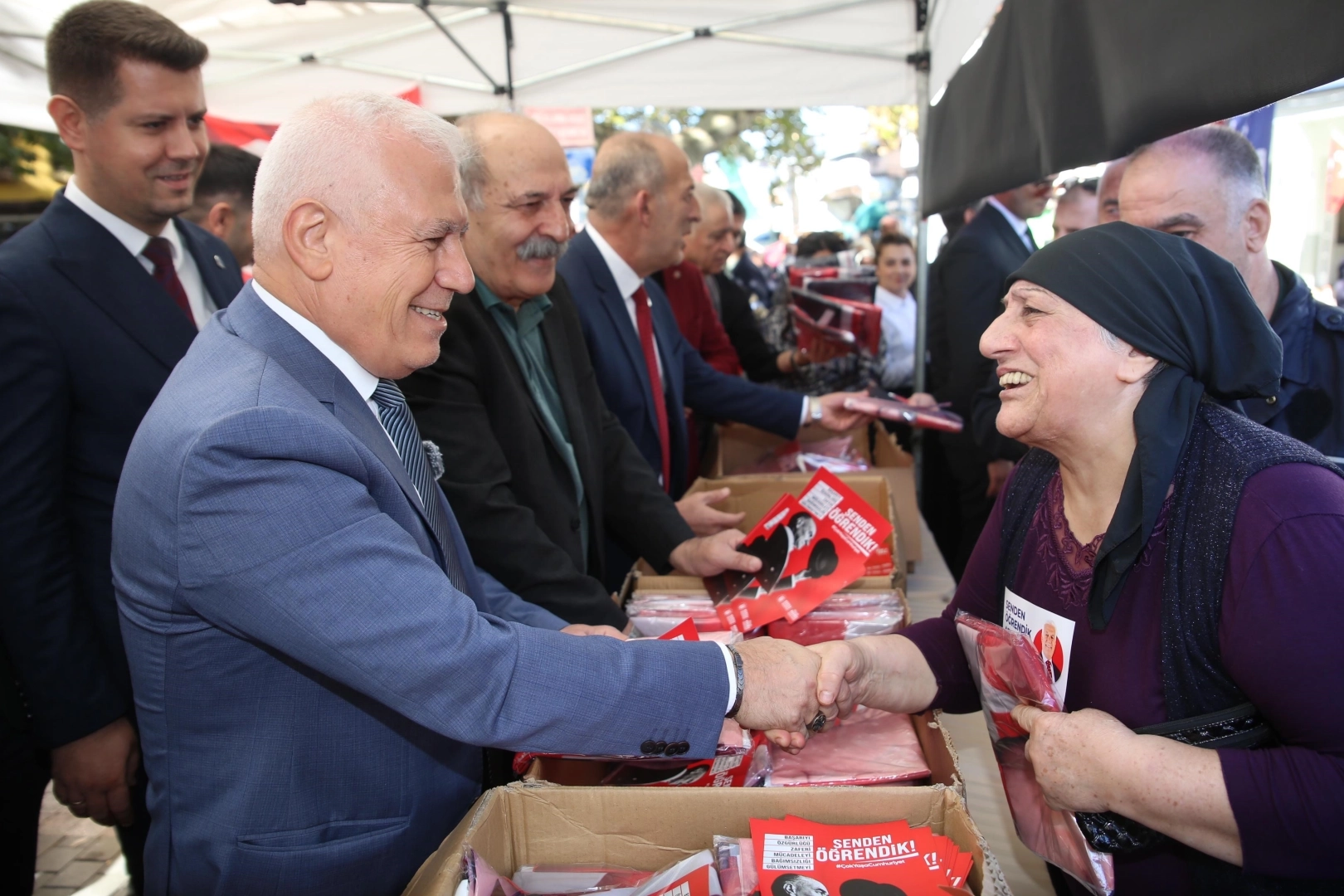 Bursa Büyükşehir Belediyesi, Cumhuriyet Bayramı öncesi 29 Ekim coşkusunu tüm kente yaymak için sokakları Türk Bayrağı ve Atatürk posterleri ile donatırken aynı zamanda Bursa'nın 17 ilçesinde de Atatürk posteri dağıtıyor. Bursa Büyükşehir Belediye Başkanı Mustafa Bozbey, bu çerçevede Heykel Orhangazi Parkı'nda vatandaşlara Ata posteri dağıttı. Etkinliğe, Başkan Mustafa Bozbey'in yanı sıra Başkanvekili Mehmet Aydın Saldız, Genel Sekreter Yardımcıları Mehmet Yıldız, Ali Altunsoy, Mehmet Emin Direkçi, BURFAŞ Genel Müdürü Erhan Pınar, Çarşı Federasyon Başkanı Muhsin Özyıldırım, siyasi partilerin il ve ilçe başkanları ile çok sayıda vatandaş katılım gösterdi. “Vatandaşlarımızı Bursa'yı bayraklarla donatmaya davet ediyorum” Etkinlikte konuşan Başkan Mustafa Bozbey, Bursa Büyükşehir Belediyesi olarak Cumhuriyet'in 101. yılını Bursa'da büyük bir coşkuyla kutlamak için bir hafta sürecek Cumhuriyet Bayramı etkinliklerine başladıklarını belirtti. Başkan Bozbey, "Bugün burada bayrak dağıtımı için bir aradayız. Vatandaşlarımızı, Cumhuriyet Bayramı için bugünden itibaren evlerinin balkonlarına, camlarına bayrak asarak Bursa'yı bayraklarla donatmaya davet ediyorum. Yıllarca salonlarda kutlanan bayramlarımızı, artık Nilüfer'de başlattığımız gelenekle alanlarda kutlayacağız. Halkımızın Cumhuriyet'e, onun değerlerine, Atatürk ilke ve devrimlerine sahip çıkması gerektiğine inanıyoruz. Sadece salonlarda değil, halkın katılımıyla alanlarda kutlanan bir Cumhuriyet Bayramı istiyoruz. Bu doğrultuda Bursa'nın 17 ilçesinde Cumhuriyet Bayramı hep birlikte, alanlarda kutlanacak. 29 Ekim günü ise artık geleneksel hale geldiği gibi, Nilüfer bu kutlamaların merkezi olacak. Sadece Bursalılar değil, çevre illerden ve hatta yurtdışından insanlar, bu coşkuyu yaşamak için Nilüfer'e geliyorlar. Herkesi, 29 Ekim'de Cumhuriyet Bayramı'nı coşkuyla kutlamaya davet ediyorum" diye konuştu.