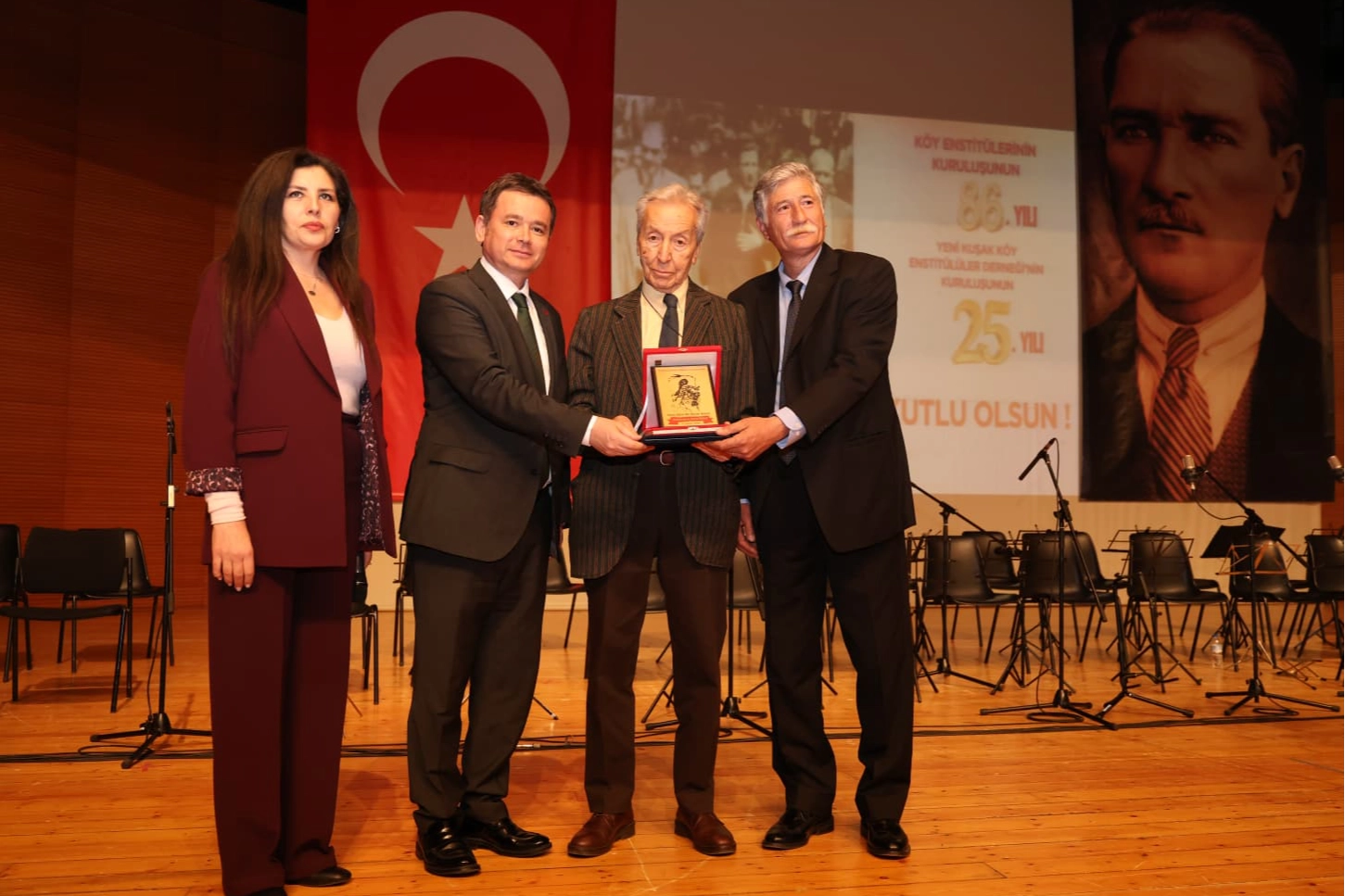 Saygın bilim insanı Prof. Dr. Bilsay Kuruç, Aydınlanma Onur Ödülü’nü Osmangazi Belediye Başkanı Erkan Aydın, Yeni Kuşak Köy Enstitülüler Derneği Genel Başkanı Prof. Dr. Ethem Duygulu ve Yeni Kuşak Köy Enstitülüler Derneği Bursa Şube Başkanı Jülide Akköprü’nün elinden aldı. Düzenlenen törende Hasan Ali Yücel Mandolin Orkestrası konser verirken, Yeni Kuşak Köy Enstitülüler Derneği Bursa Şubesi Halk Oyunları Topluluğu da sahnelediği gösteriyle geceye renk kattı.