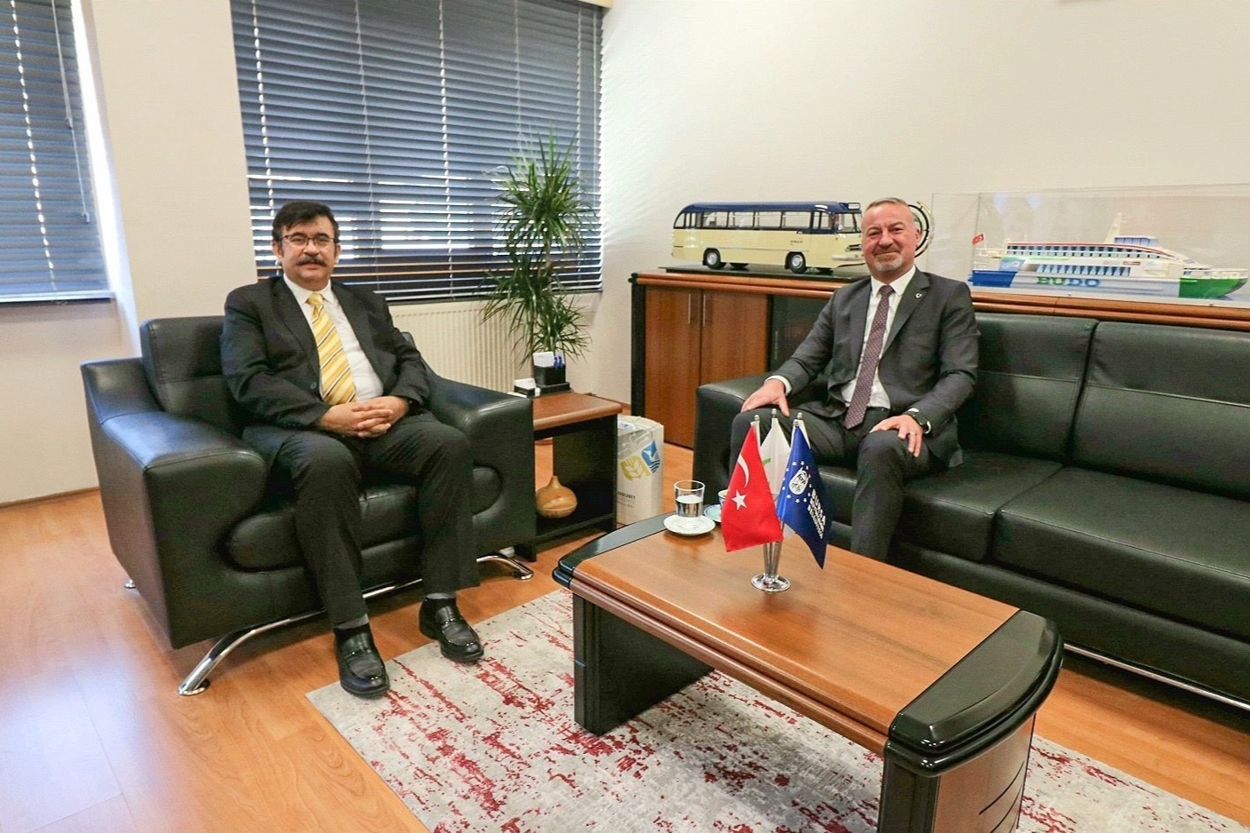 Karacabey Belediye Başkanı Fatih Karabatı, BURULAŞ Genel Müdürlüğü görevine başlayan Fahrettin Beşli’ye nezaket ziyaretinde bulundu. Karabatı, Beşli’yi yeni görevi dolayısıyla tebrik ederek çalışmalarında başarılar diledi. Ziyarette Karacabey ile ilgili çeşitli konuları da ele alan Karabatı, özellikle toplu taşıma ile ilgili vatandaşların talep ve bazı sorunlarını bizzat Genel Müdür Beşli’ ye iletti.