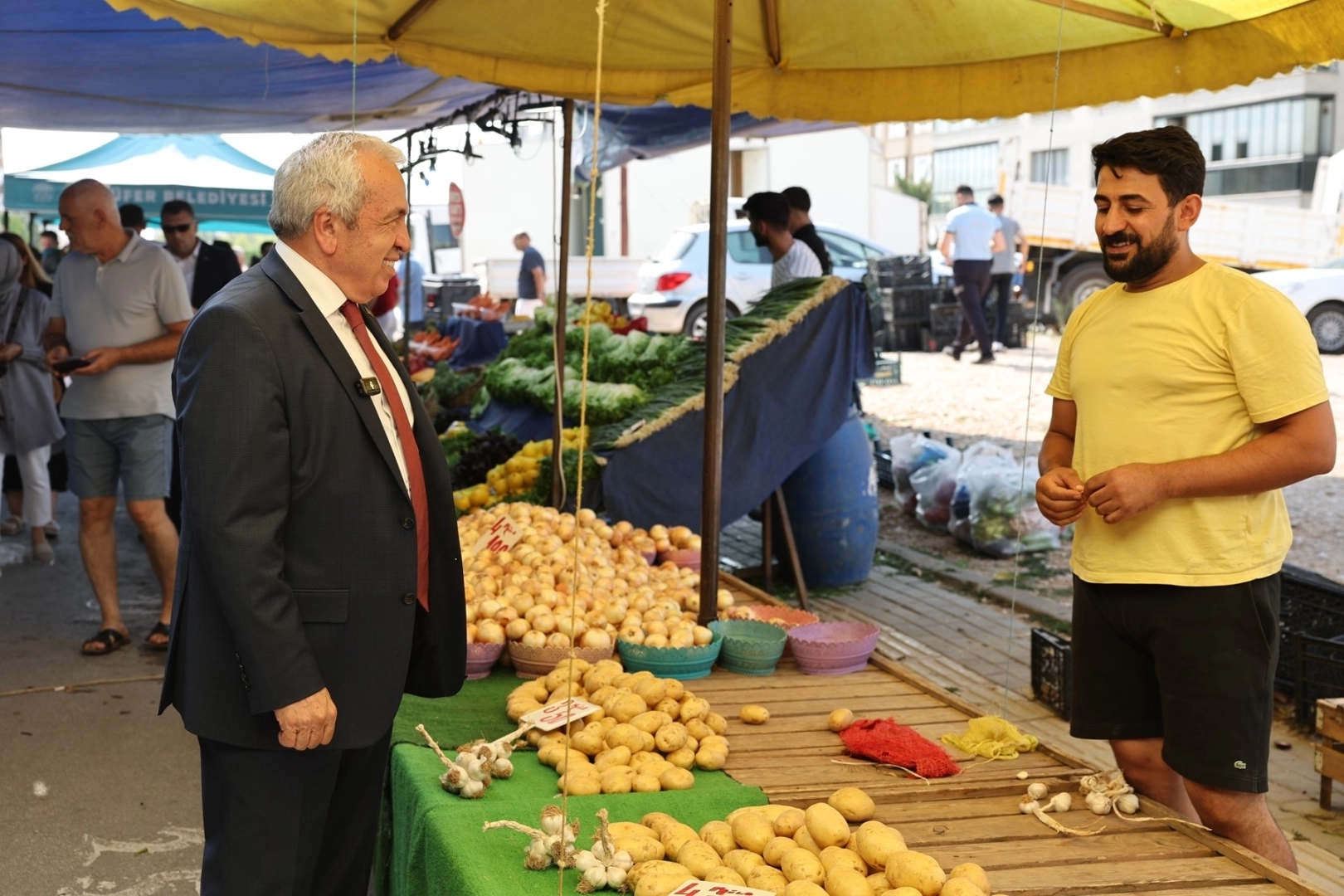 Başkan Şadi Özdemir, semt pazarında dolaşırken vatandaşlarla bol bol fotoğraf da çektirdi.