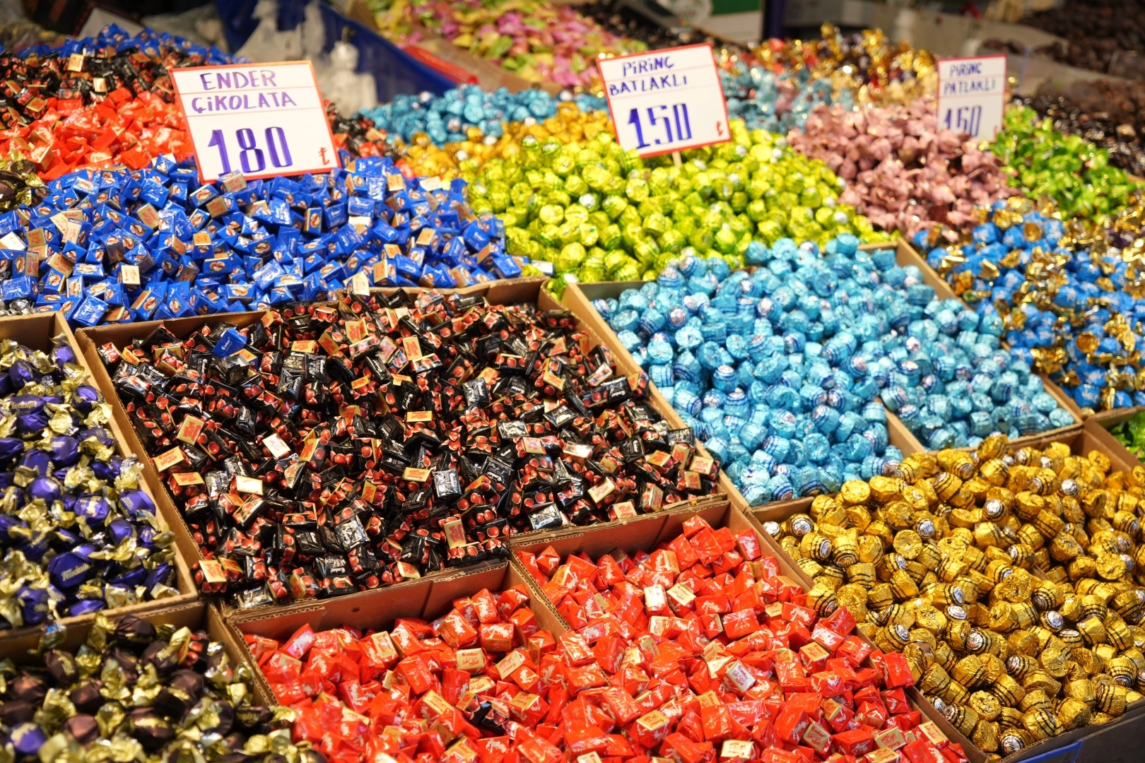 Bursa’da tarihi çarşıda, Ramazan Bayramı’na sayılı günler kala bayram şekerleri ve çikolataları tezgahlarda yerini alarak müşterilerin beğenisine sunuldu. Kilogram fiyatının 150 liradan 350 lira arasında değişen şeker ve çikolatalar kısa bir süreliğine alıcılarını bekliyor. Rengarenk görüntüleri ile çocukları cezbeden şeker ve çikolatalara vatandaşlar bayram öncesi yoğun ilgi gösteriyor.