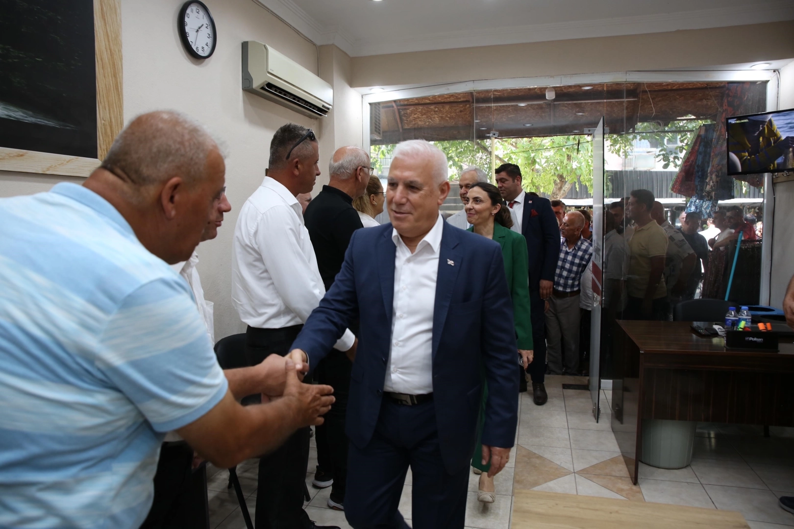 ‘Başkan Bozbey Burada’ projesi çerçevesinde Mustafakemalpaşa ilçesinde çeşitli ziyaretlerde bulunan Bursa Büyükşehir Belediye Başkanı Mustafa Bozbey, beraberindeki Bursa Milletvekili Nurhayat Altaca Kayışoğlu, Mustafakemalpaşa Belediye Başkanı Şükrü Erdem ve CHP İlçe Başkanı Gökhan Demir ile birlikte Mustafakemalpaşa Mahalle Muhtarları Derneği’nde üreticilerle ve köylülerle buluştu. Bir hafta öncesine kadar kilosunu 10 lira civarında sattıkları kavun ve karpuzun şimdi toptancılar tarafından 2-3 lira civarında alınmak istendiğini dile getiren köylüler, yaşadıkları mağduriyet sebebiyle ürünlerini tarladan toplayamadıklarını söyledi.