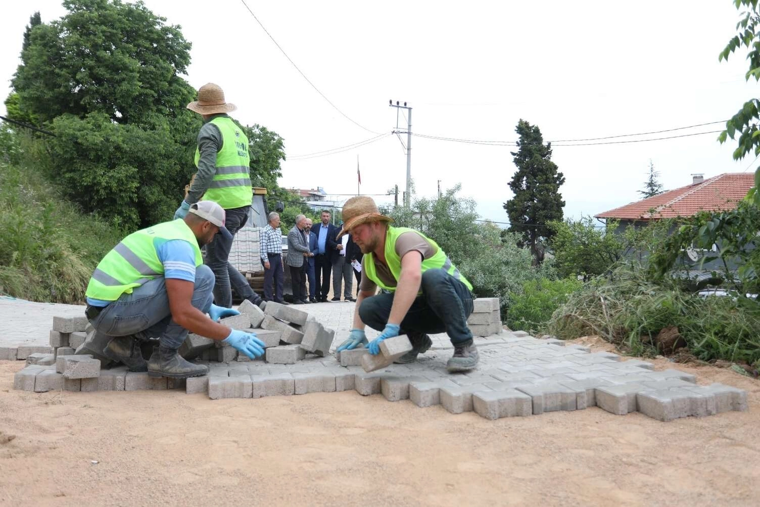 Kırsal mahallelerde altyapısı tamamlanan bölgelerde yolların parke taş kaplama çalışmalarına hız veren İnegöl Belediyesi, Sungurpaşa Mahallesinde 16 sokağı 6 bin metrekare parke taş ile kaplıyor.