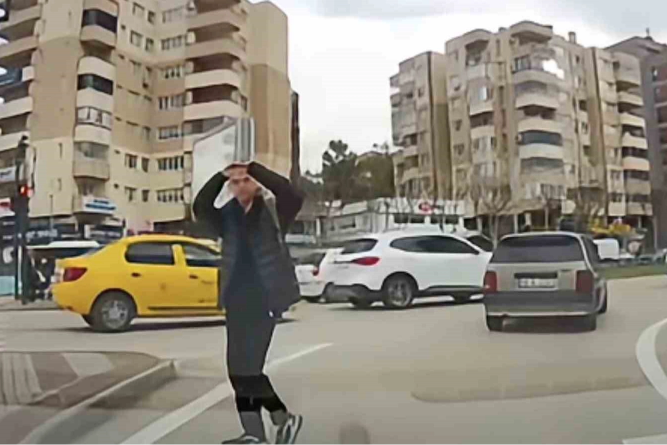 Bursa’nın Nilüfer ilçesinde trafikte yaşanan anlamlı bir an, bir aracın kamerasına yansıdı.