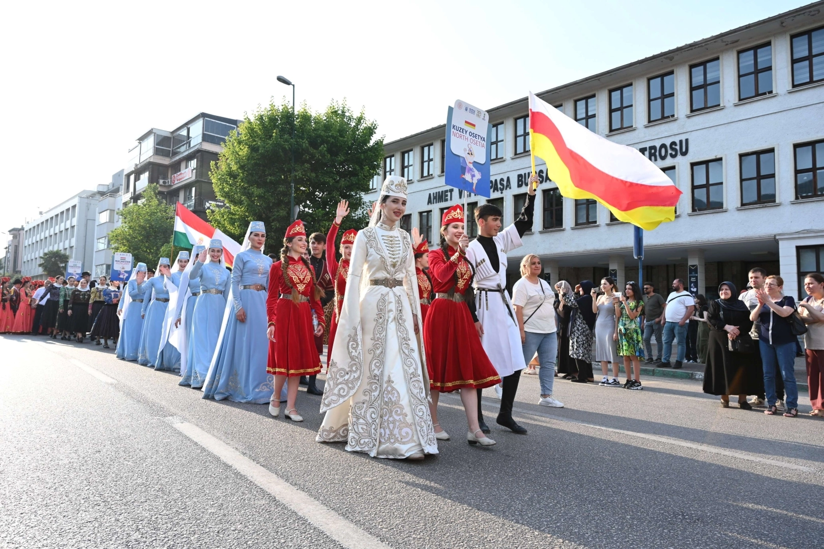 BKSTV Başkanı Sadi Etkeser de Bursa Büyükşehir Belediyesi’nin katkıları ve Kültür ve Turizm Bakanlığı’nın destekleriyle yapılan Altın Karagöz Halk Dansları Yarışması’nın dünyada sayılı halk dansları organizasyonları arasında gösterildiğini belirtti. Farklı kültür ve inanışları Bursa’da buluşturduklarını dile getiren Etkeser, yarışmanın dünya barışına katkı sağlamasını temenni etti. Konuşmaların ardından yerli ve yabancı halk dansları ekiplerinin katılımıyla renkli kortej yürüyüşü başladı. Başkan Alinur Aktaş ve beraberindekiler, kortejdeki yerli ve yabancı halk dansları ekiplerini alkışlayarak selamladı. Cumhuriyet Caddesi üzerinden Kültürpark’a kadar süren kortejde, yabancı ekipler yöresel danslarıyla kendilerini tanıttı. Kortej yürüyüşünün ardından Kültürpark Açıkhava Tiyatrosu’ndaki açılış gecesinde ise tüm ekipler bir araya gelerek sırasıyla hem gösterilerini Bursalılar için sergiledi hem de dünyaya verdikleri barış mesajını yineledi. Konuk dansçılar, açılış gösterisinin ardından yöresel kıyafetleriyle Başkan Alinur Aktaş'ı tarihi belediye binasında da ziyaret etti.