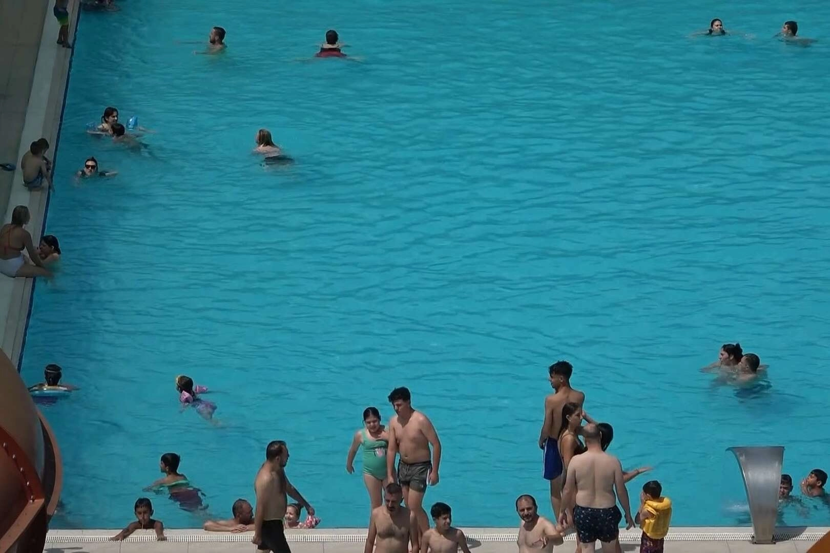 Hava sıcaklıklarının mevsim normallerinin üzerinde seyrettiği Bursa'da vatandaşlar, havuzlara akın etti. Meteoroloji'den alınan bilgilere göre bugün hava sıcaklığı 42 derece olarak ölçülürken yarın biraz daha serin olması bekleniyor. Evinde klima olmadığını belirten vatandaşlar ise böyle serinlemeye çalıştıklarını söyledi. Bugün Bursa’nın en sıcak günü olacağını günler öncesinden öğrendiklerini belirten vatandaşlar, "Termometreler 42 derece olarak ölçüyor. Bizim de evimizde klima olmadığı için serinleme yöntemini aquaparka gelerek bulduk. Burada gayet güzel bir kalabalık var. Herkes serinlemek için buraya gelmiş" dedi.