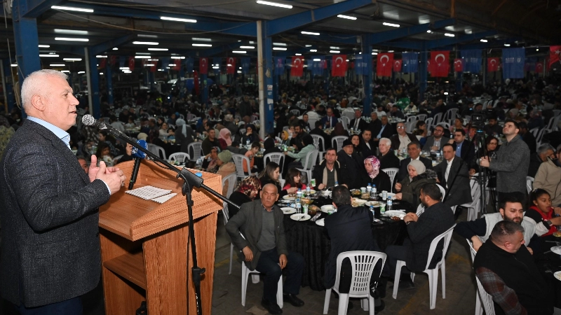 "Ramazan’ın paylaşma ruhu Bursa’da yaşatıldı"11 ayın sultanı Ramazan’ı birlik, beraberlik, yardımlaşma ve paylaşma ruhu içerisine geçirdiklerini söyleyen Bursa Büyükşehir Belediye Başkanı Mustafa Bozbey, kendisinin ve Büyükşehir Belediyesi yöneticilerinin 17 ilçede düzenlenen iftar programlarında vatandaşlarla aynı sofrayı paylaştığını ifade etti. Her gün farklı bir ilçede Bursalılarla sohbet ettiklerini ve dertleştiklerini belirten Başkan Mustafa Bozbey, "17 ilçedeki 33 farklı noktada hazırladığımız iftar programlarında yaklaşık 90 bin, 3 sabit iftar noktasında ise 110 bin olmak üzere toplam 200 bin vatandaşımızı aynı sofrada buluşturduk. 15 sabit dağıtım noktasında ise 150 bin iftariyelik paket ve bardak çorba ikramında bulunduk. Ramazan’ın bereketini halkımızla birlikte paylaştık. Sosyal belediyecilik anlayışımızla emeklilerimize ve gerçek ihtiyaç sahiplerine ulaştık. Ramazan’ın ruhunu hep birlikte yaşadık. Tüm halkımızın ve İslam aleminin Ramazan Bayramı mübarek olsun" dedi.