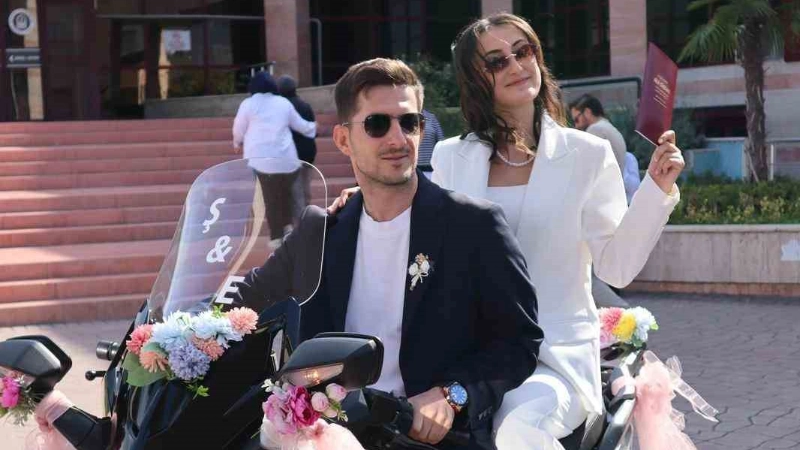 Nikâhın ardından motosikletlerini çiçek ve tüllerle süsleyen çift, düğün konvoyuna ilginç bir renk kattı. Gelinlik yerine beyaz takım tercih eden Şule Albayrak Çağın ve damat Emre Çağın, süslenmiş motosikletleriyle şehir turuna çıktı. Renkli görüntülere sahne olan anlarda çevredeki vatandaşlar çifti alkışlayarak mutluluklarına ortak oldu.