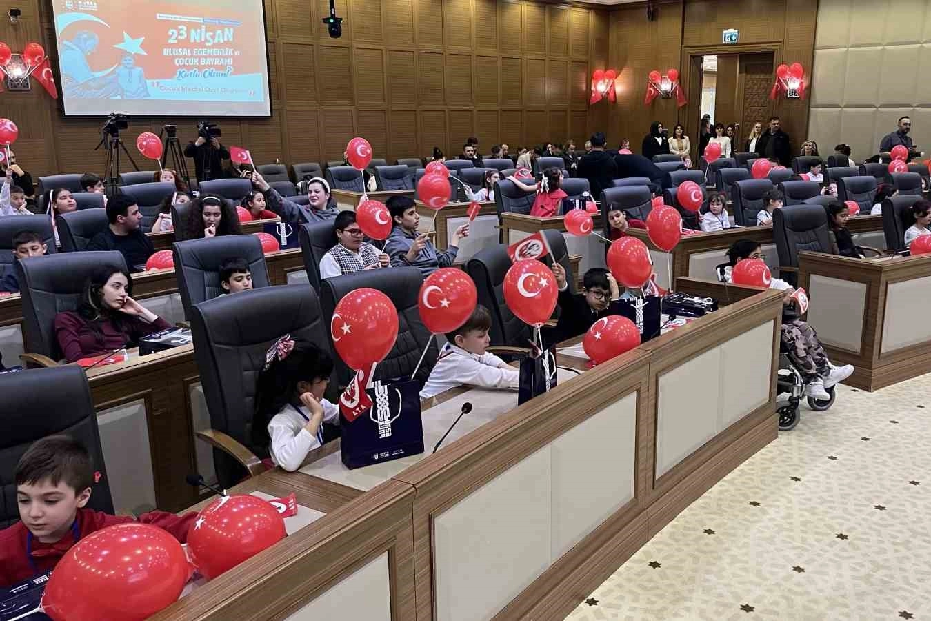 Türkiye Büyük Millet Meclisi’nin açılışının yıl dönümü kutlamaları çerçevesinde Bursa Büyükşehir Belediyesi, ’Bursa Büyükşehir Belediye Meclisi Çocuk Oturumu’ ile renkli anlara sahne oldu. Bursa Büyükşehir Belediyesi Başkan Vekili Şahin Biba’nın katılımıyla düzenlenen oturumda, söz çocukların oldu.