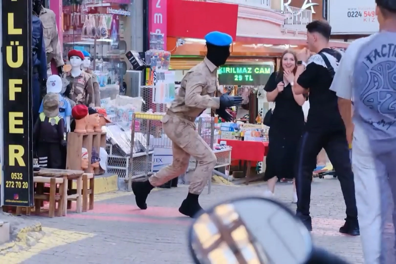 Bursa’da bir genç cansız manken kılığına girip giyim mağazasında ve dükkanın önündeki mankenlerin arasında hareketsiz bir şekilde beklemeye koyuldu. Yanından geçen insanların beklemediği bir anda hareket etmesiyle birlikte çevredeki vatandaşlar önce çığlık atarak kaçarken, sonra da kahkahaya boğuldu. Yaklaşık 6-7 saatini vererek bekleyen genç, şaka yaptığı insanları ise tepkilerini kameraya alarak sosyal medya hesaplarına yükledi. Video kısa sürede izlenme rekoru kırdı. Cansız manken şakasına maruz kalan vatandaşların tepkileri yüzlerce beğeni aldı.
