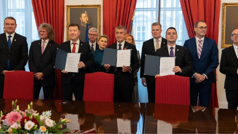 Geçtiğimiz ay parlamento seçimlerinin yapıldığı Çekya'da bugün üç parti koalisyon anlaşması imzaladı. Çekya'nın en zenginlerinden Andrej Babis'in lideri olduğu ve seçimlerde yüzde 35 oy alan popülist parti ANO, AB karşıtı Motoristler Partisi ve bir diğer AB ve NATO karşıtı aşırı sağcı SPD ile koalisyon anlaşması imzaladı. Buna göre Andrej Babis başbakanlık görevini üstlenirken, partisi ise 8 bakanlık elde etti. Motoristler Partisi'ne 4 bakanlık, SPD'ye ise 3 bakanlık verildi. Koalisyon anlaşmasının imzalanmasının ardından açıklamalarda bulunan Andrej Babis, yeni kabinenin aralık ortasına kadar Cumhurbaşkanı Petr Pavel tarafından atanmasını umduklarını söyledi. Söz konusu anlaşmayla yeni koalisyon hükümeti 200 sandalyeli parlamentonun 108'ine sahip olurken, SPD lideri Tomio Okamura'nın parlamento başkanlığına seçilmesi için de yeterli sayıya ulaşıldı.