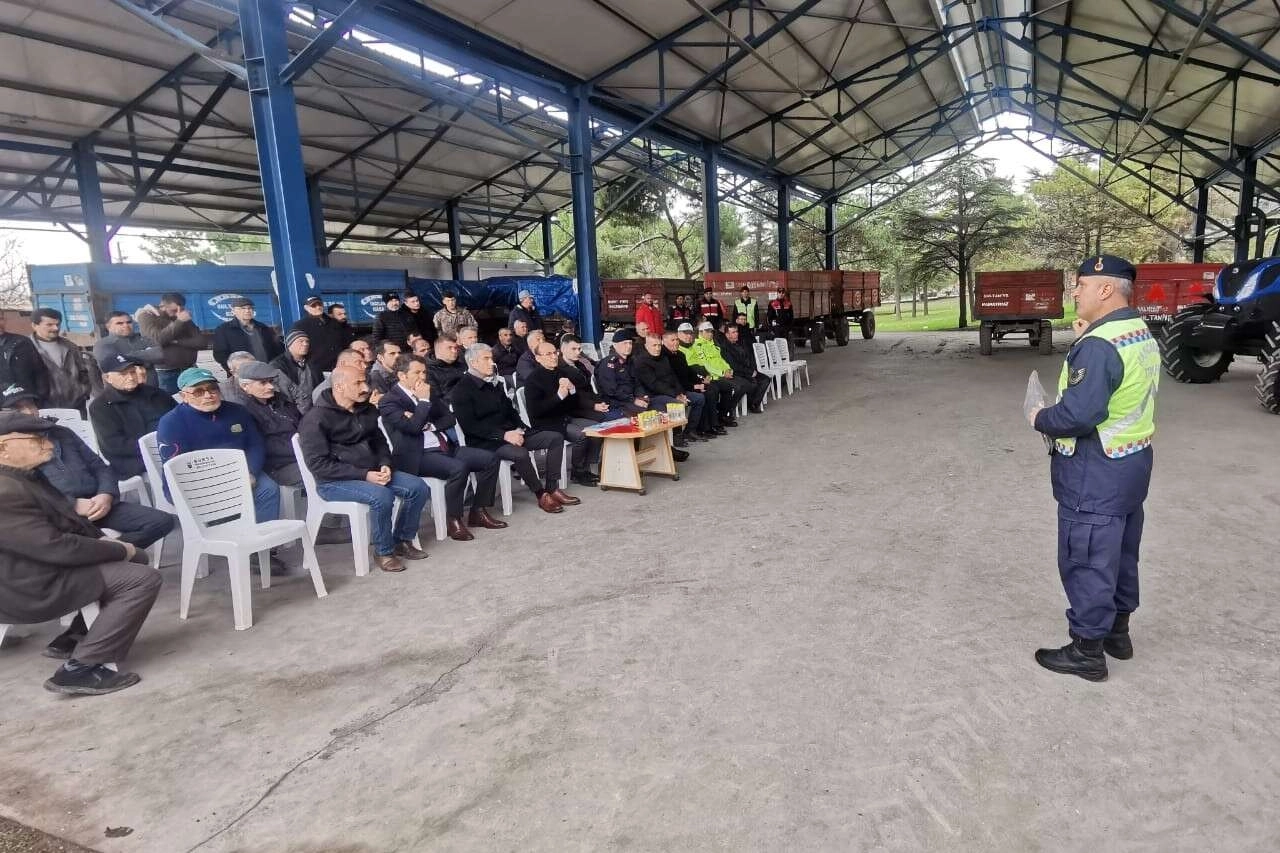 Çiftçilere; Traktörlerin devrilmeye karşı tertibatlarından rops demiri ve kabinin önemi, traktörlerin ön ve arka ışık donanımlarına ek olarak dönerli sarı ışık uyarı lambasının kullanılması, traktörlere bağlı römorkların, reflektör uyarı işaretleri ile görünür hale getirilmesi konularında trafik eğitim semineri gerçekleştirildi.