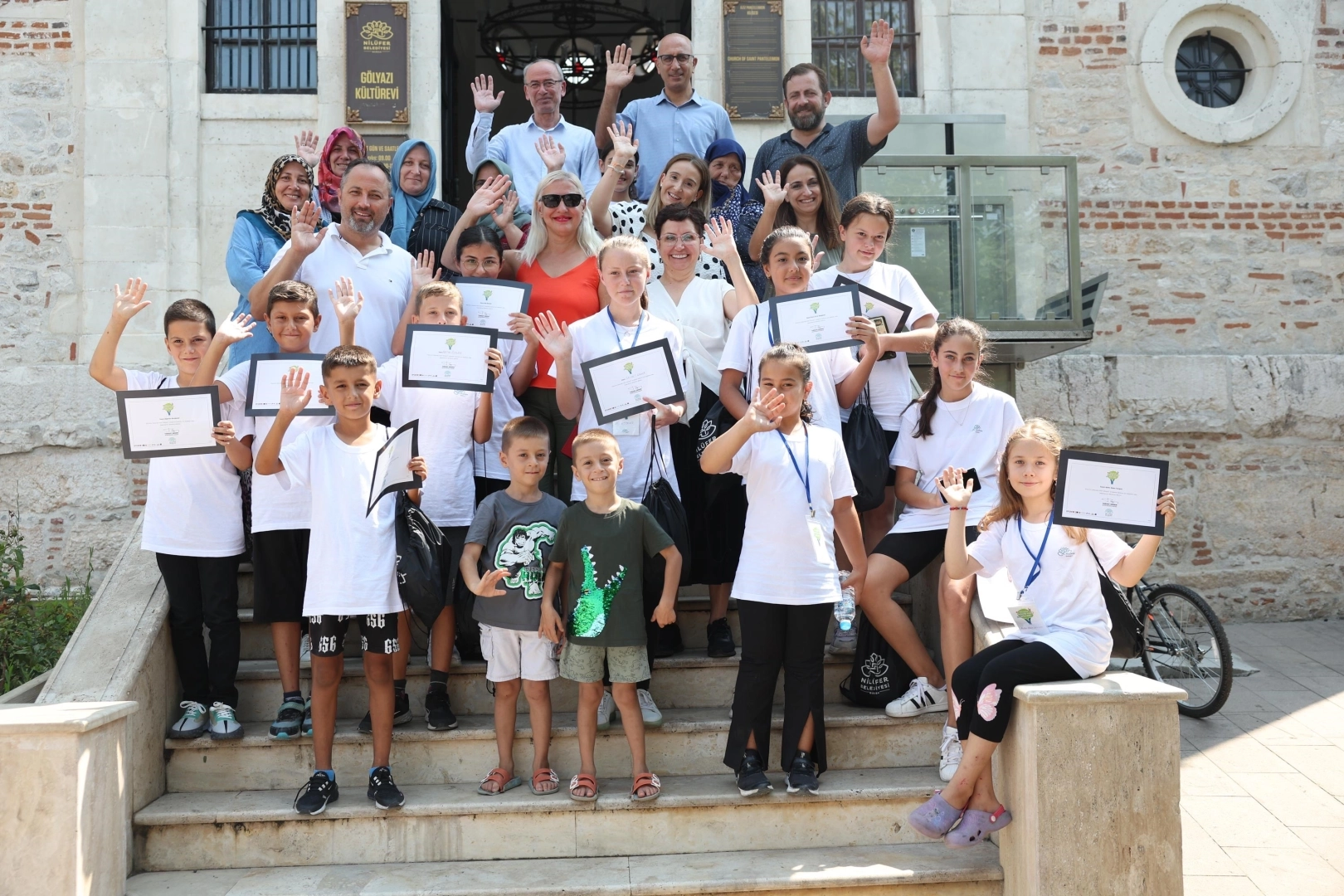 Nilüfer Belediye Başkan Yardımcısı Dr. Sibel Özer, Remzi Çınar, Osman Uçar ile Nilüfer Belediyesi Kültür ve Sosyal İşler Müdürü Nejla Aslan, proje sunumunun ardından eğitime katılan çocuklara belgelerini verdi.