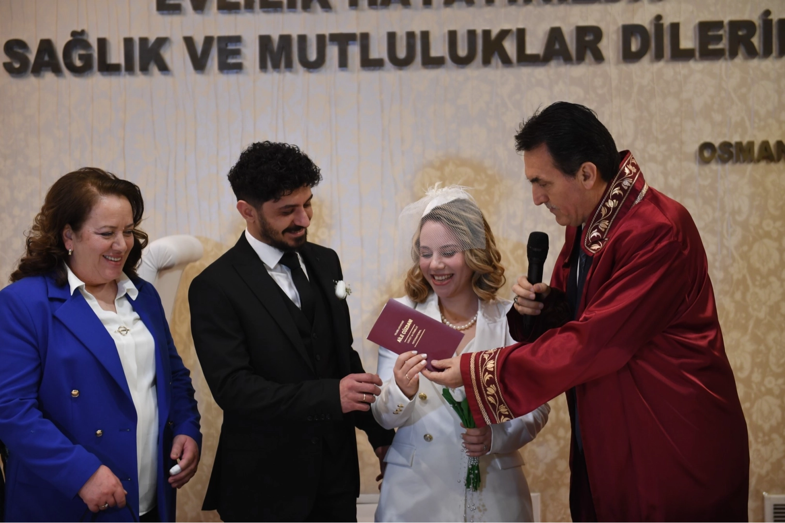 Evlilik tarihlerini 14 Şubat Sevgililer Günü’ne denk getirmek isteyen çiftler, Osmangazi Belediyesi Merinos Nikah Salonu’na akın etti. Günde ortalama 7-8 nikahın kıyıldığı Osmangazi’de 14 Şubat’ta bu sayı 17’ye yükseldi. Dünya evine girmek için bu özel günü tercih eden Arzu Dokuzoğlu ve Metehan Çankaya çiftinin nikahını Osmangazi Belediye Başkanı Mustafa Dündar kıydı. Büyük bir heyecan yaşayan çifte ömür boyu mutluluklar dileyen Dündar, evlilik cüzdanını geline teslim etti.